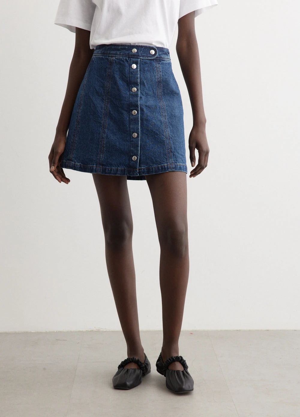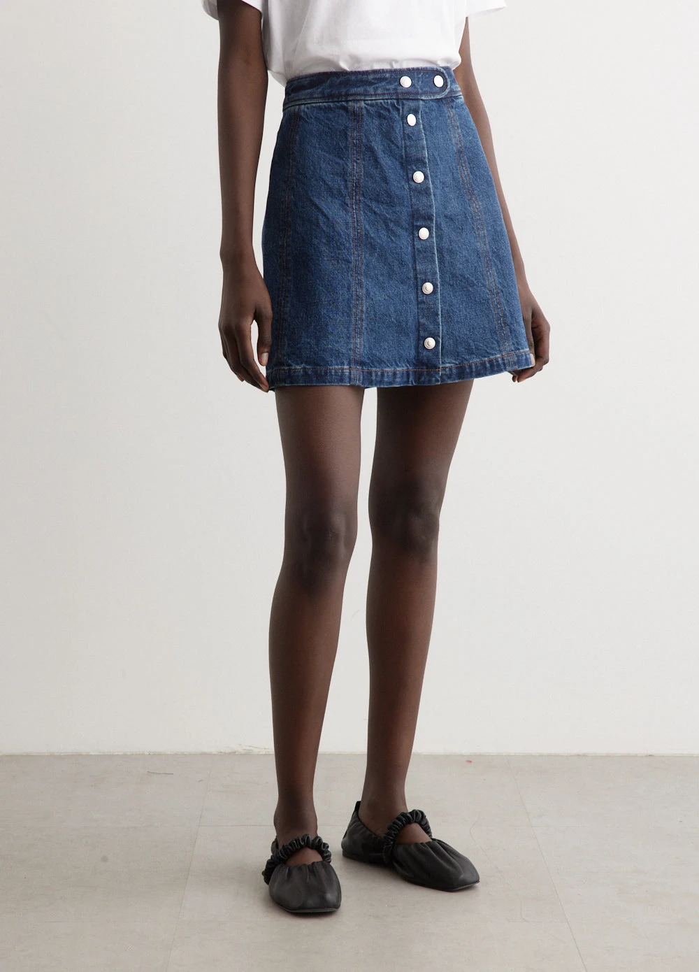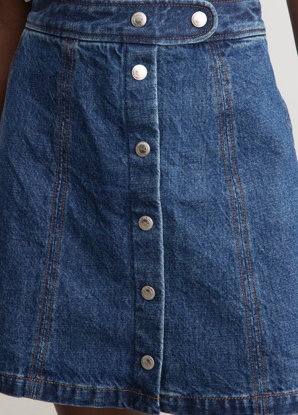 Established in 1987 by fashion designer Jean Touitou, A.P.C. is known for its relaxed and minimal approach to design. Each season you’ll find a refined edit of everyday essentials, wardrobe staples and timeless accessories. Crafted from cotton denim, the Jupe Poppy Skirt is tailored to an a-line mini skirt silhouette. Adorned with panel detailing, and front button closure.