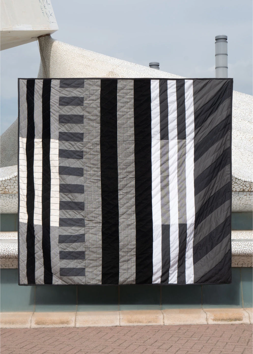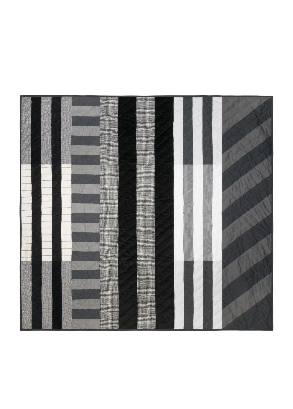 Inspired by the artistry of Sean Scully, Jessica Ogden’s latest collection draws from the minimalist allure of Scully’s paintings. These quilts offer a harmonious blend of subtle rhythms and surprising colour selections, and a graphic play that breaks the simplicity of geometric shapes. The Robert Quilt is a handcrafted quilt made with fabrics from prior A.P.C. collections.