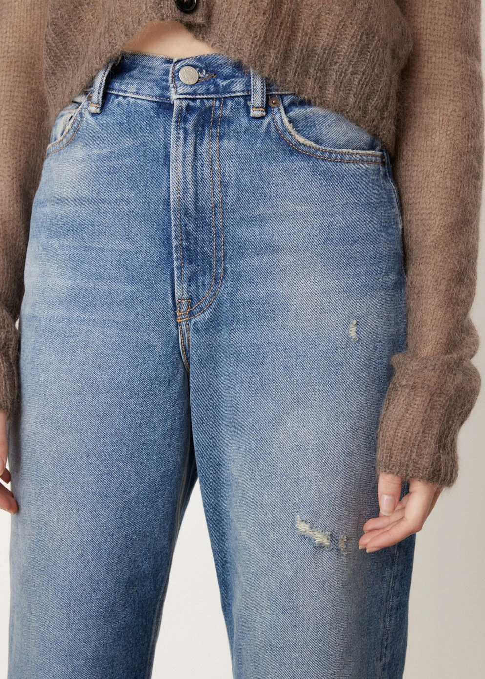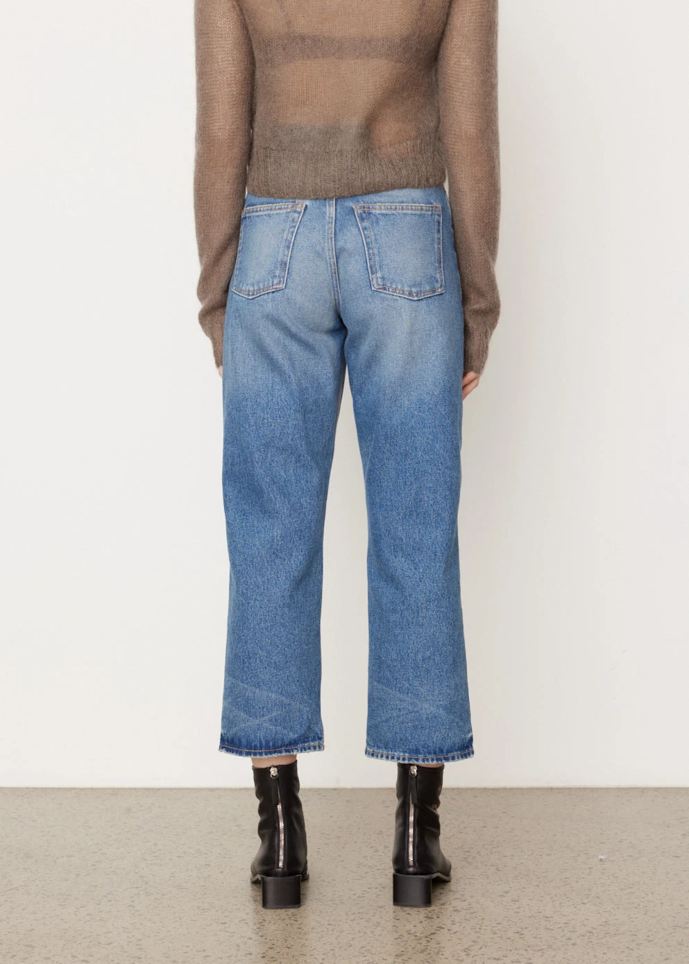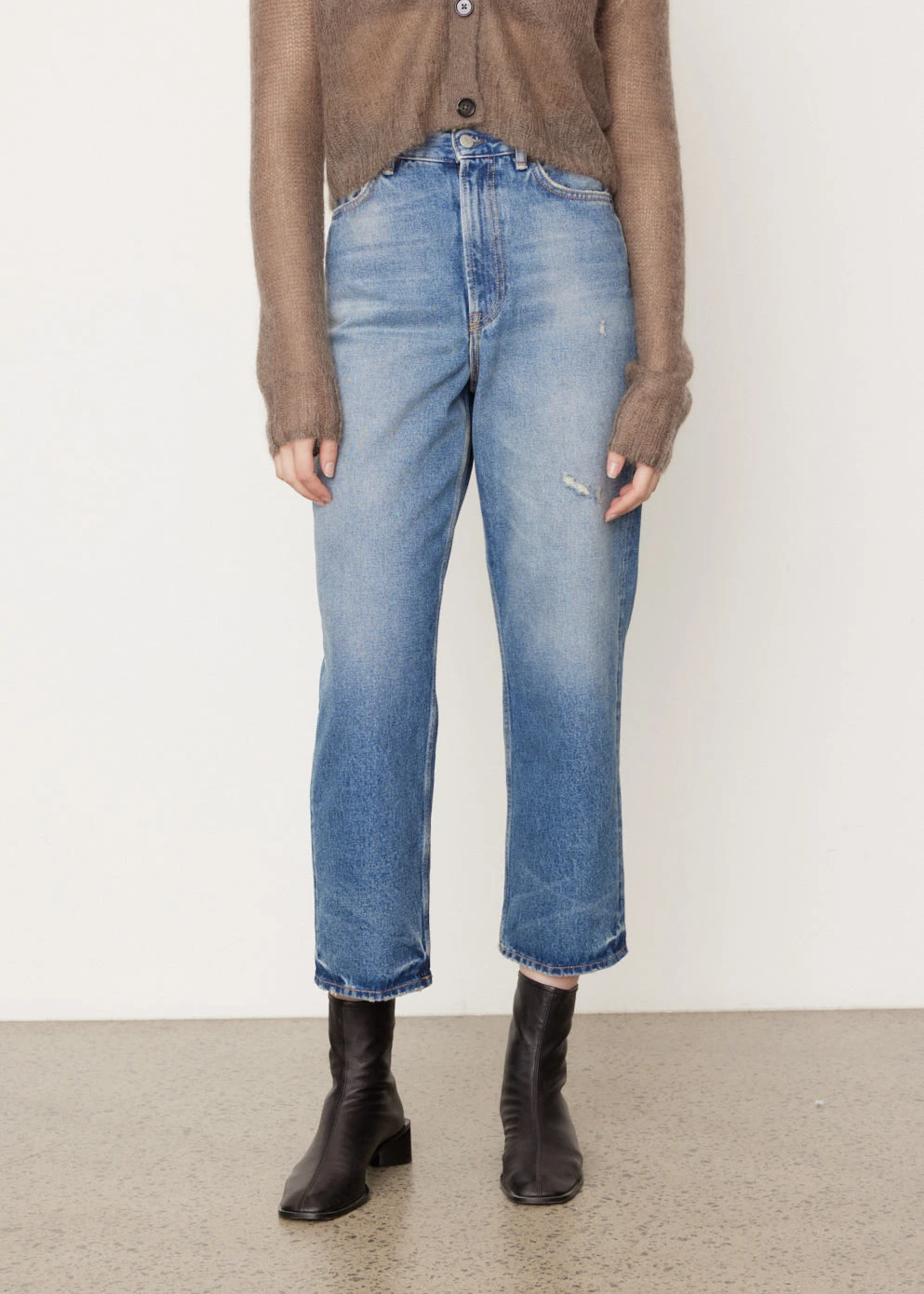 Defined by their experimental take on Scandinavian minimalism, Acne Studios blends technical design with an unexpected palette and androgynous style. Crafted from a rigid cotton denim, the 1993 Vintage Blue Jeans 30″ are designed with a straight, cropped leg and sit ultra-high at the waist. It’s finished with faded, whisker and distressed details for a lived-in look.