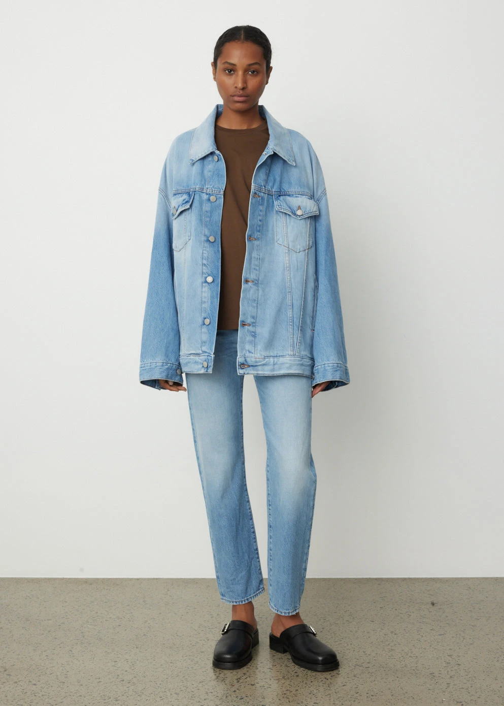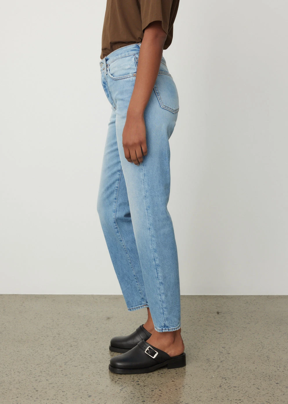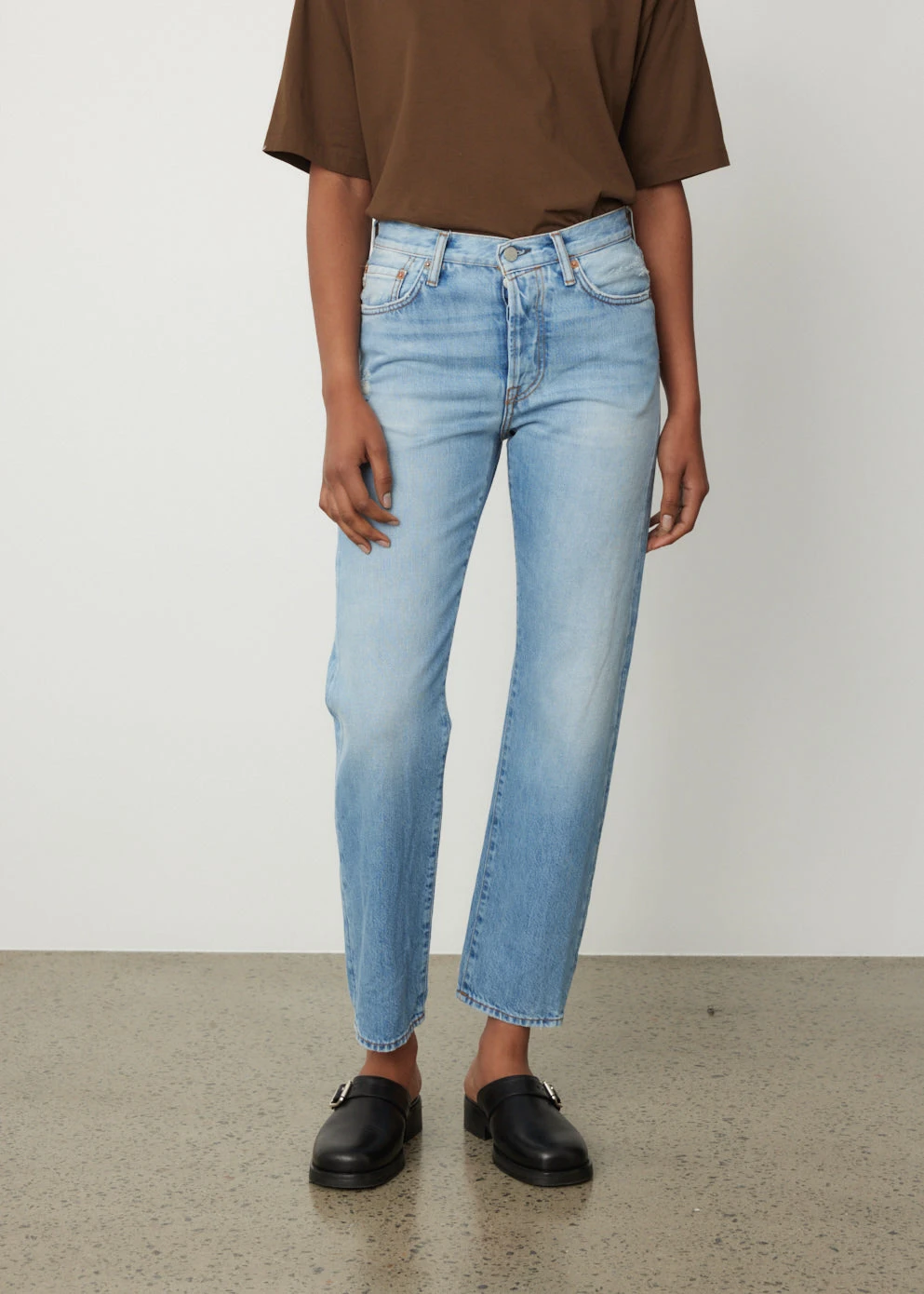 Defined by their experimental take on Scandinavian minimalism, Acne Studios blends technical design with an unexpected palette and androgynous style. The brand combines premium fabrication and vintage style in the 1997 Jeans. Crafted with rigid vintage blue denim, the silhouette features a flattering high-rise waistline and a straight leg. Wear over the Leather Square Toe Mules to elevate the style.