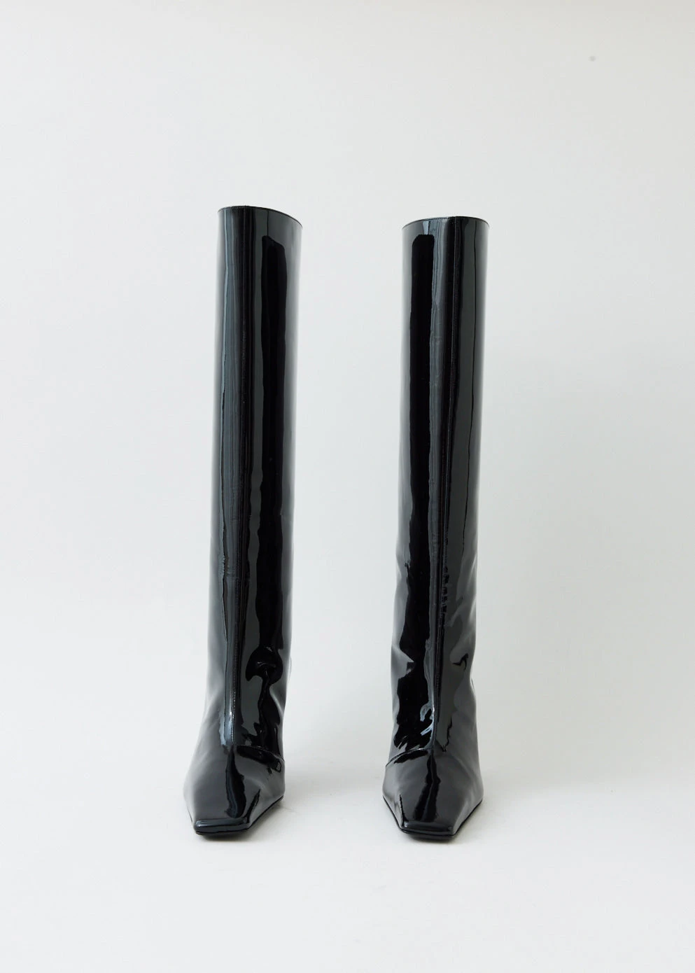 Feel unstoppable in these Bequared Boots. Featuring a shiny finish leather, under the knee reach, and a classic pointed toe design, these boots will make you feel empowered, ready to take on any challenge. Step into the spotlight and take your look to the next level. Defined by their experimental take on Scandinavian minimalism, Acne Studios blends technical design with an unexpected palette and androgynous style. Style with .