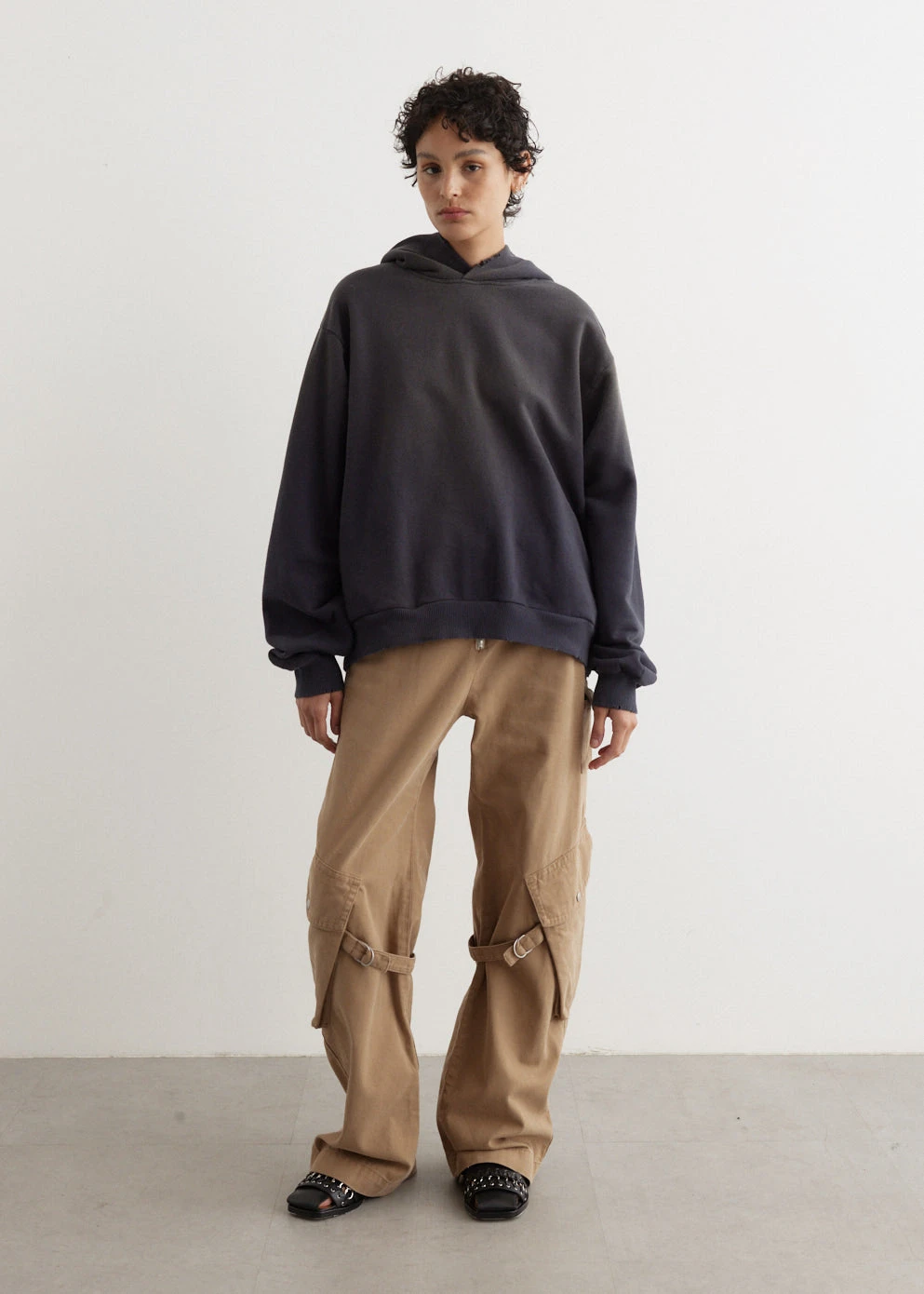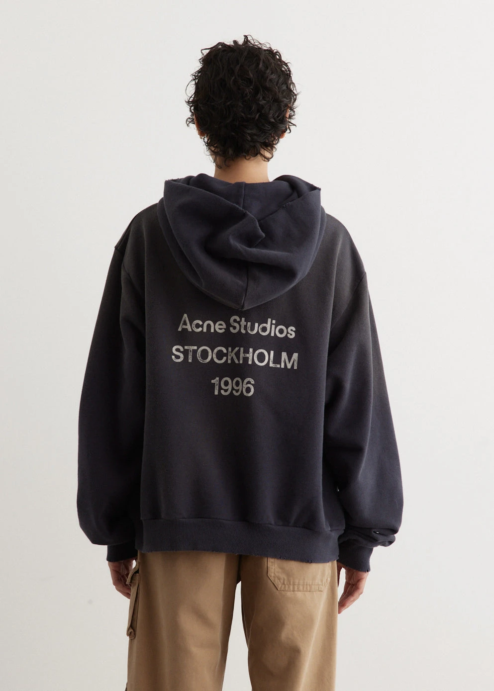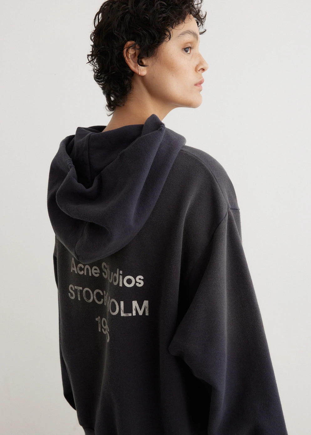 Defined by its experimental take on Scandinavian minimalism, Acne Studios blends technical design with an unexpected palette and androgynous style cues. The label’s signature off-beat accessories add personality to everyday outfits thanks to subtle details. The Fransiska Hoodie is the perfect companion for chilled days. Its oversized fit and hooded design pair perfectly with ribbed cuffs and kangaroo pocket for extra comfort and convenience. Detailed with a vintage sprayed finish, and logo print across the back.