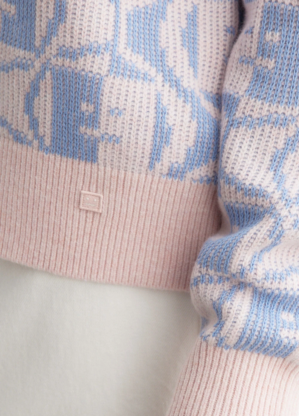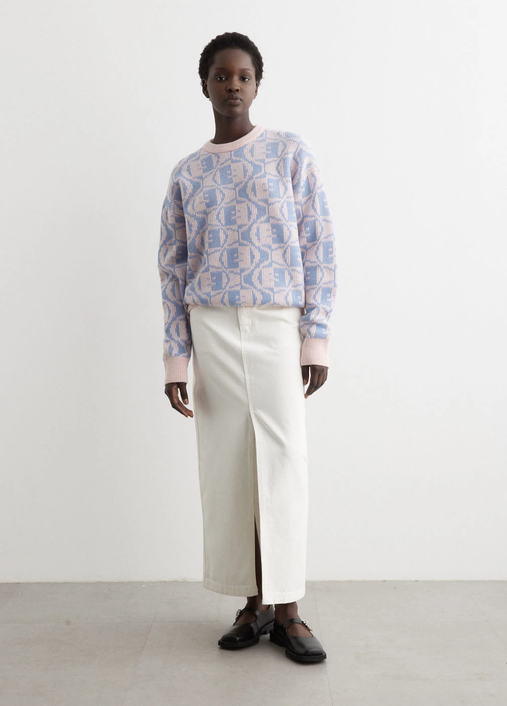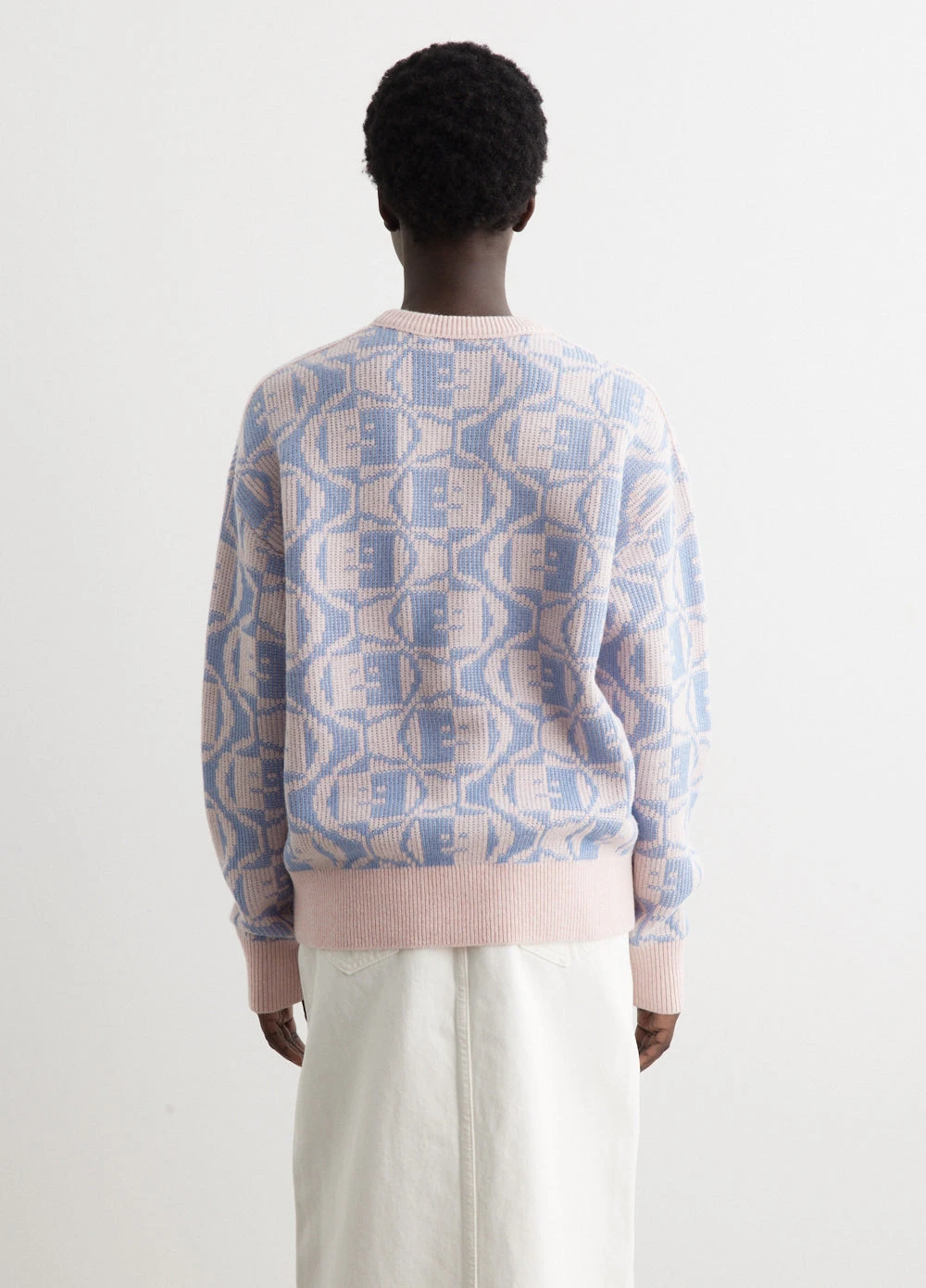 Defined by its experimental take on Scandinavian minimalism, Acne Studios blends technical design with an unexpected palette and androgynous style cues. The sub-label “The Face” focuses on a minimal approach and a monochrome colour palette with the recognisable “not too happy, not too sad” logo. Made from a lambswool-cotton blend, the Katch 2 Tones Face is a classic crewneck-knit that’s adorned with an all-over two-tone Face logo pattern.Â