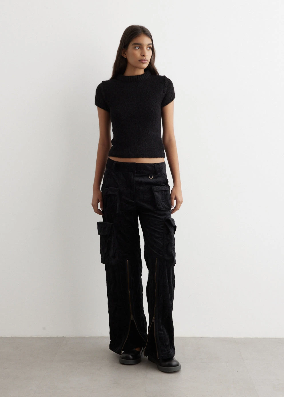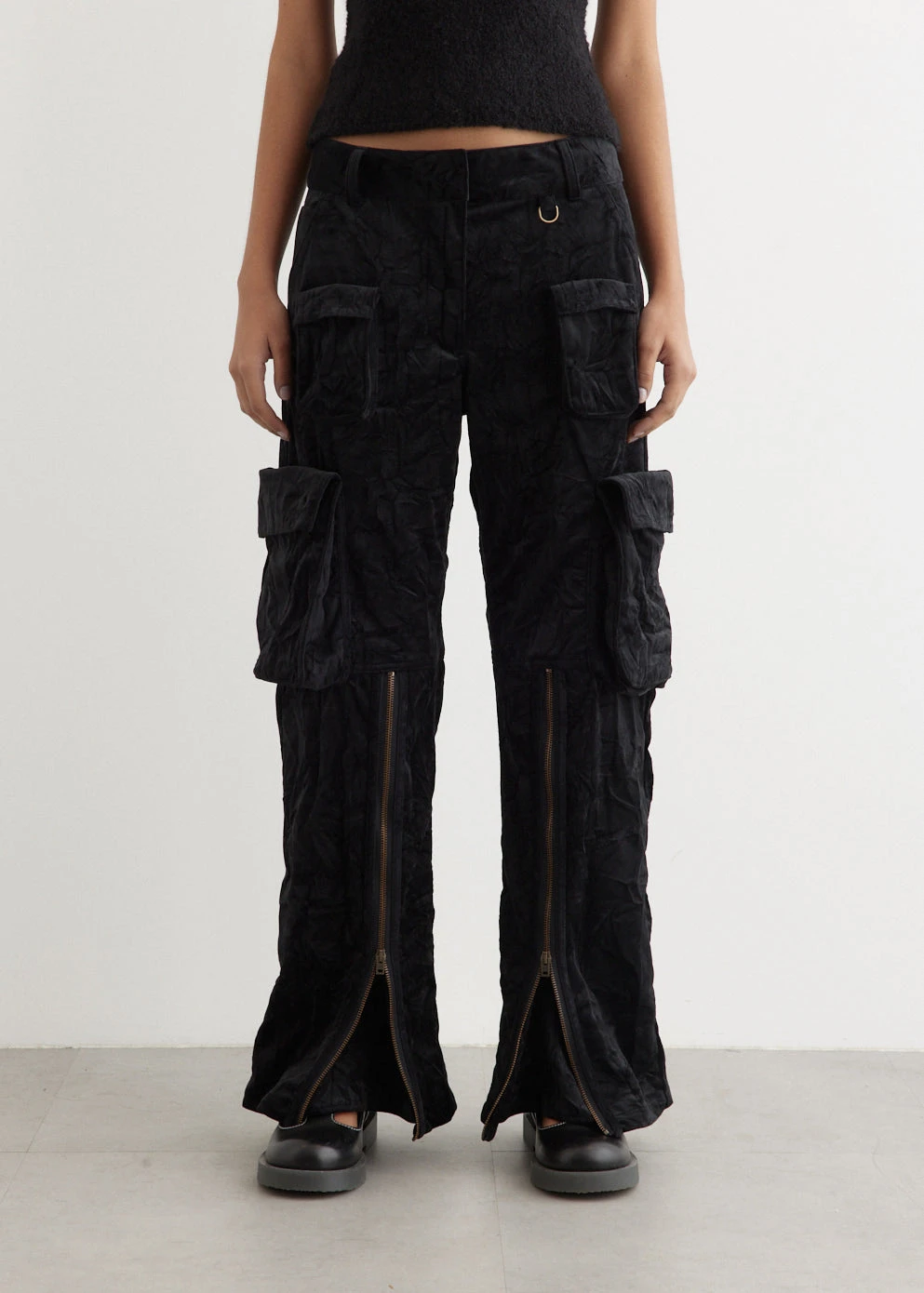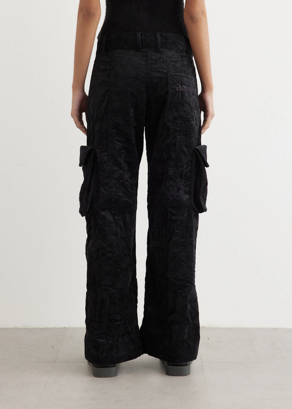 Defined by its experimental take on Scandinavian minimalism, Acne Studios blends technical design with an unexpected palette and androgynous style cues. The Patessa Crinkled Velvet Trousers offer a contemporary take on the classic cargo pant silhouette. Crafted from velvet with a crinkled finish, it features front zips on the legs and an embroidered logo on the back that adds a stylish finishing touch.