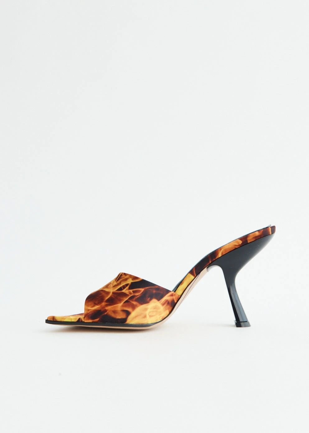 Born by the extraordinary friendship between two women, Pamela Costantini and Domitilla Rapisardi, they craft cutting-edge accessories with modern silhouettes, offering contemporary luxury. Crafted with an eco-silk upper, the Adele Printed Flames Mules have an all-over printed flame design and boasts a chic, angled heel.