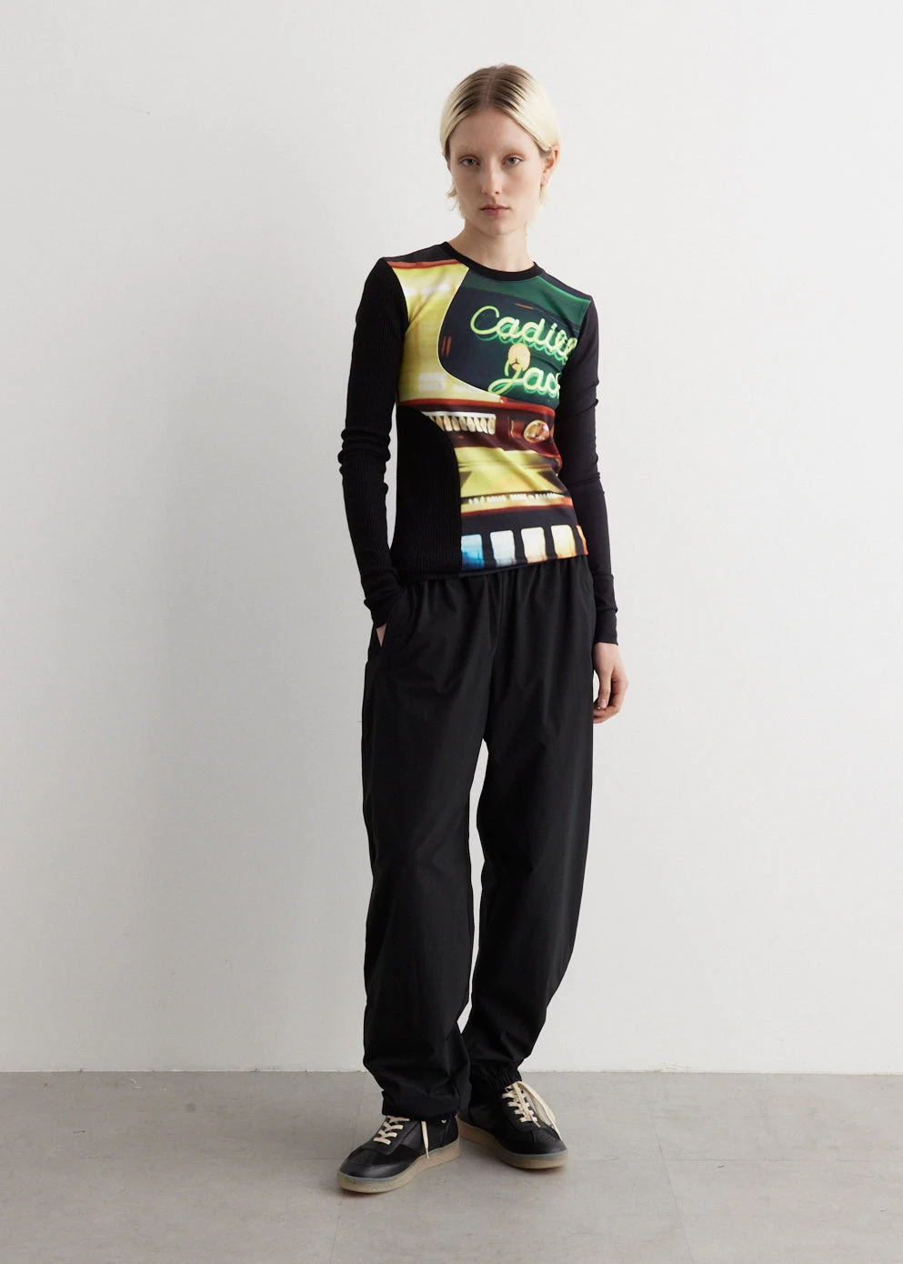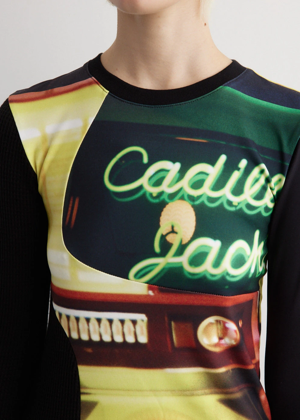 The identity of Andersson Bell was inspired by the merge of two contrasting cultures, reinterpreting Scandinavian aesthetic to create garments from a Korean perspective. The ADSB Film Archive Long Sleeve T-Shirt boasts a panelled graphic print contrasted with waffle knit panels, with a silver-tone logo patch at the back neckline for an edgy touch.