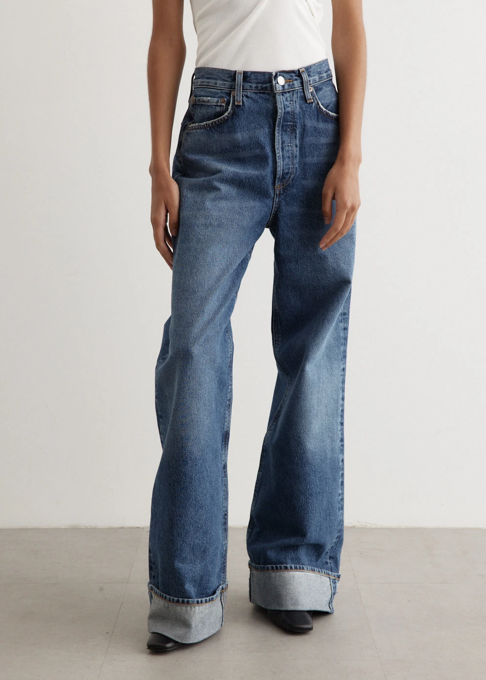 AGOLDE is a Los Angeles based brand focused on functional and directional denim that redefines classic silhouettes through a modern lens. The Dame Jeans featuring a waist accentuating high-rise, a relaxed cut through the hips and a wide leg finished with a untacked cuff.