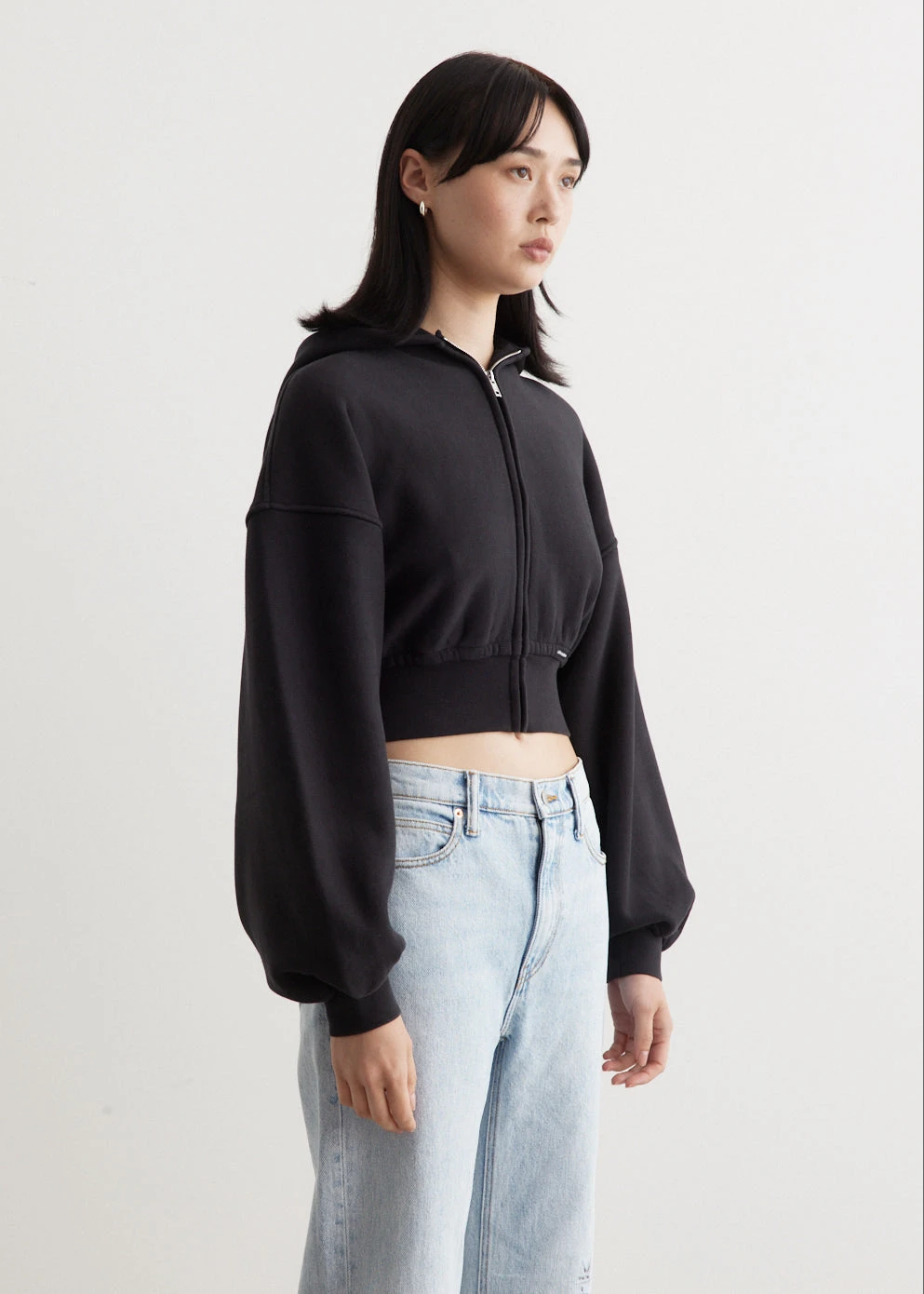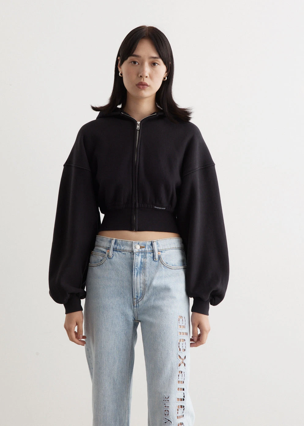 Inspired by elements of New York nightlife and street culture, accessories and apparel from Alexander Wang are instant icons. Adorned with shimmering rhinestone embellishments and branded details, each piece in the collection sparks youthful spirit and urban attitude. Crafted from unbrushed terry, the Cropped Zip Up Hoodie is detailed with a faded seam label at the left ribbed hem.
