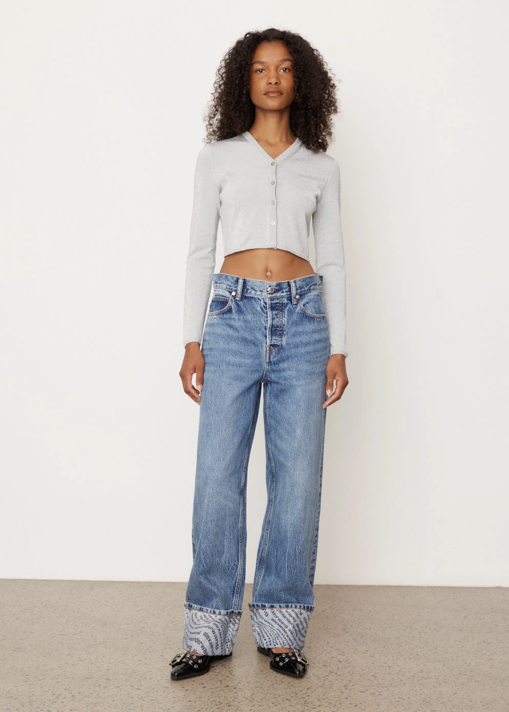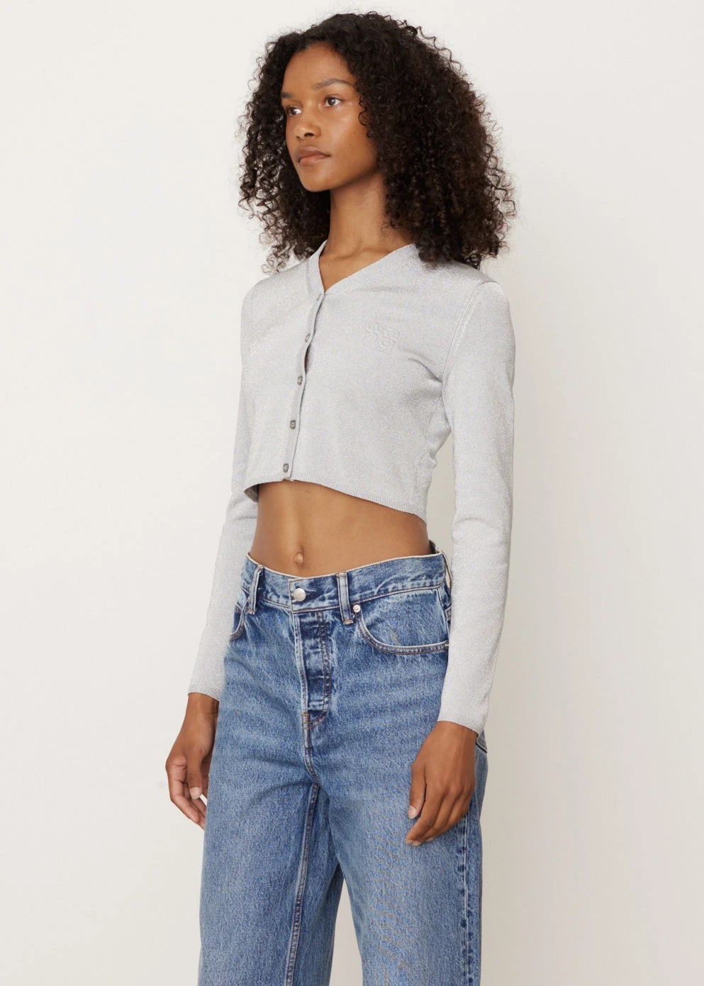 Inspired by elements of New York nightlife and street culture, accessories and apparel from Alexander Wang are instant icons. Adorned with shimmering rhinestone embellishments and branded details, each piece in the collection sparks youthful spirit and urban attitude. Crafted from a viscose blend, the Long Sleeve V-Neck Cardigan is cut to a regular fit with a cropped hem. Featuring a V-neckline , button closure and the brands signature stacked logo on the chest.
