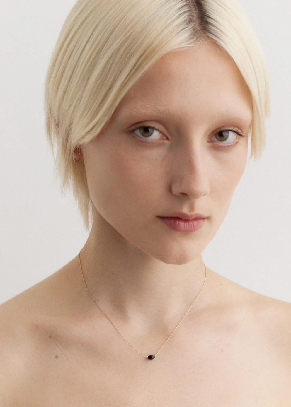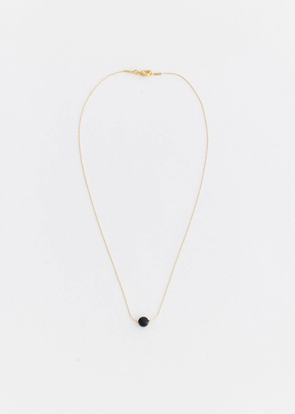 Curated to exude confidence and energy, Incu welcomes their ‘Incu Jewellery’ collection. Enhance your uniqueness with these vibrant and dynamic pieces for a timeless aesthetic. Crafted in 18k gold-plating, the Allia Necklace is a dainty chain that’s embellished with a single black crystal bead.Â