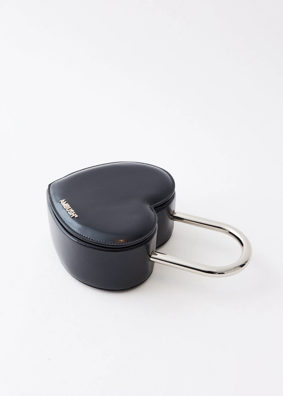 Mixing aesthetics of sub-cultures from around the world, luxury-streetwear brand AMBUSH doesn’t shy away from abstract references. Extending into jewellery, the brand’s head designers and power couple Yoon and Verbal blend surrealism with classic silhouettes. Made from leather, the Heart Padlock Bag is shaped into a heart with a magnetic closure front. It features a silver-tone metal handle and embossed branding on the leather.Â