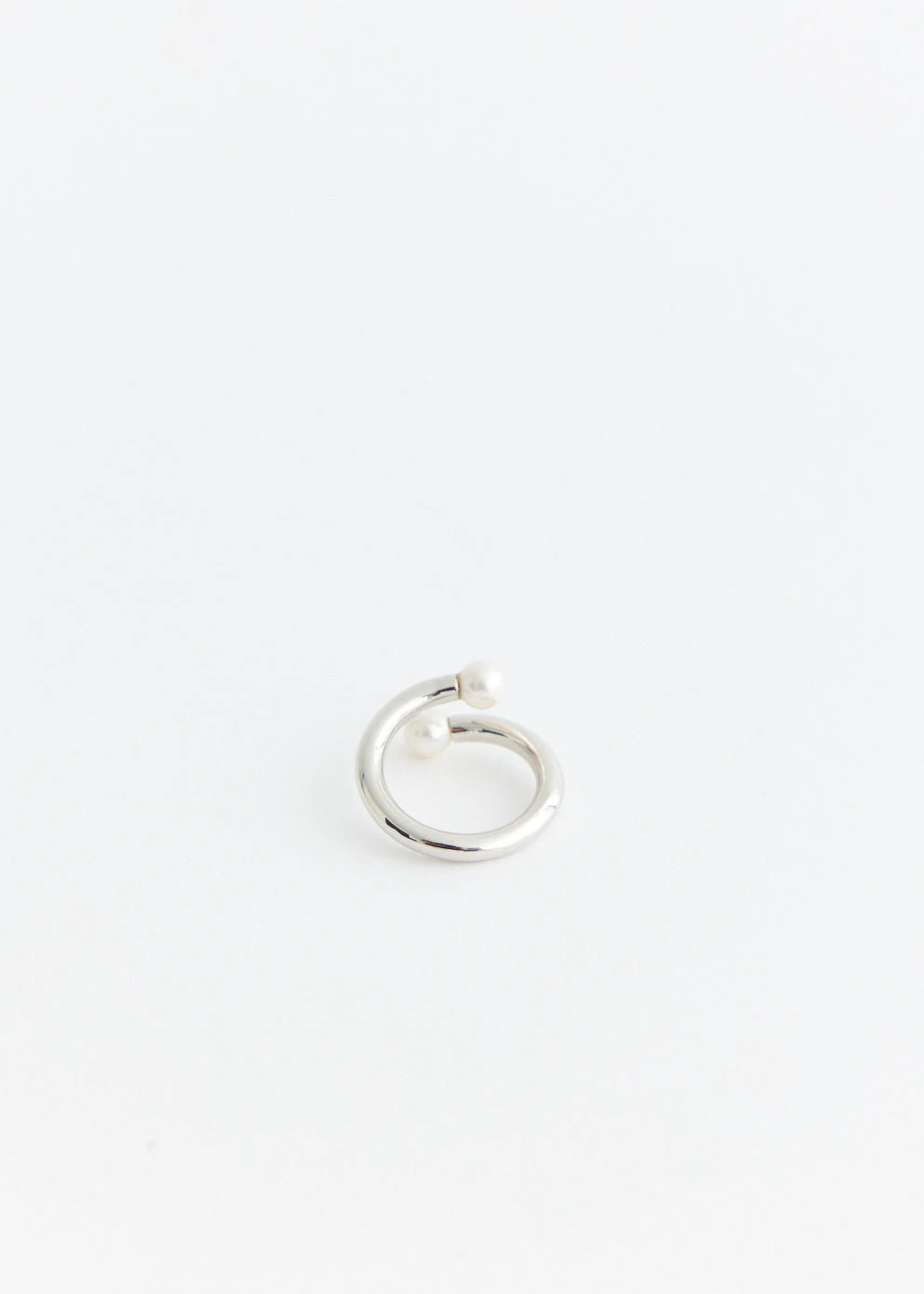Mixing aesthetics of sub-cultures from around the world, luxury-streetwear brand AMBUSH doesn’t shy away from abstract references. Extending into jewellery, the brand’s head designers and power couple Yoon and Verbal blend surrealism with classic silhouettes. Crafted from brass, the Small Pearl Barbell Ring are designed with a semicircle twist silhouette detailed with faux-pearls.