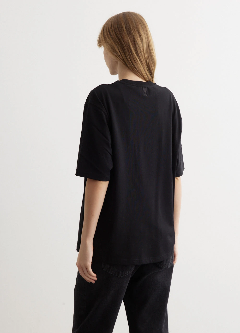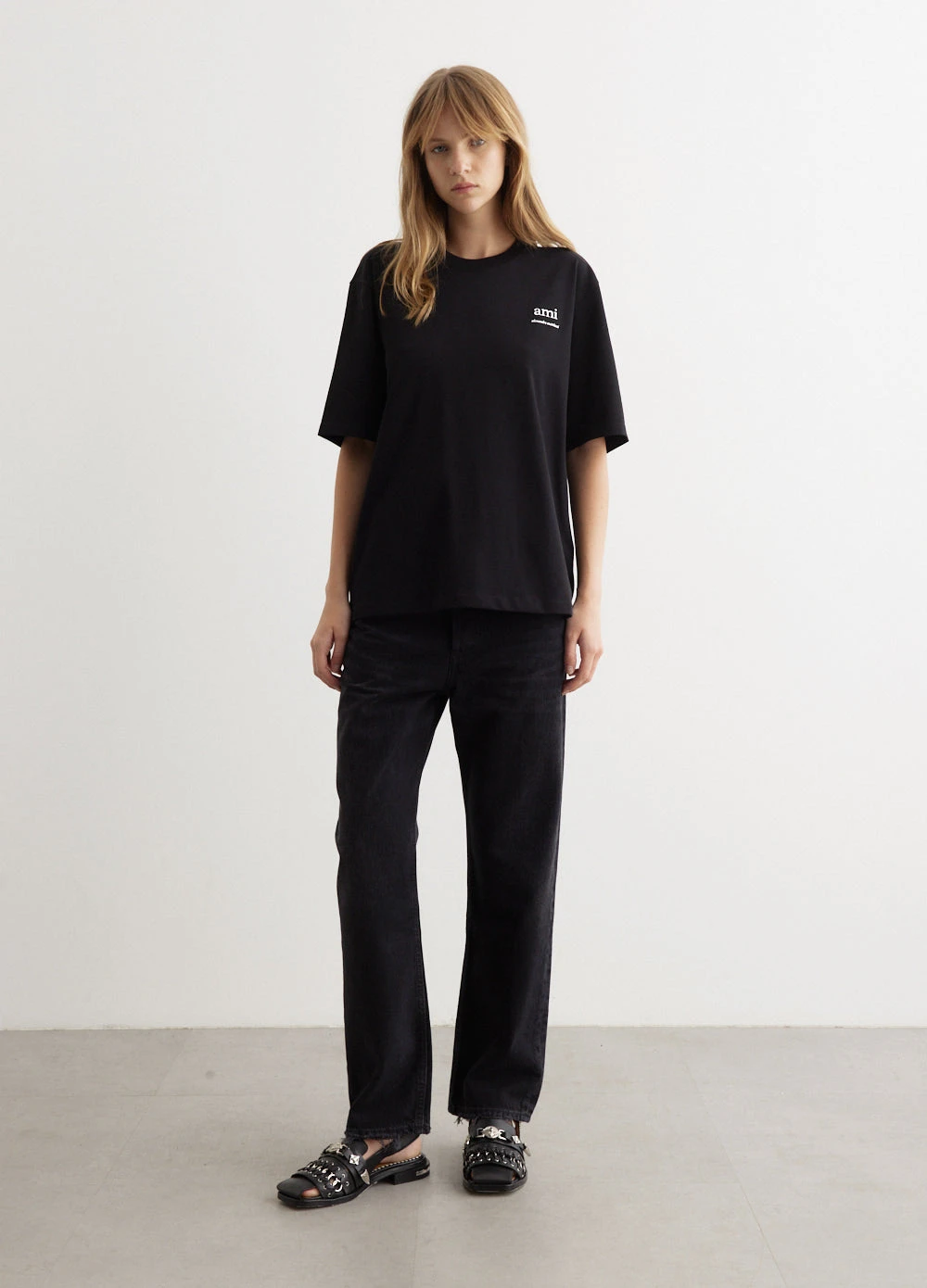Parisian label AMI Paris fuses the boundaries between casual and chic, offering a comprehensive and stylish wardrobe for both men and women. Known for everyday staples with a twist, you’ll find the pillars of any wardrobe season after season. Made from cotton, the AMI T-Shirt is adorned with a printed logo on the chest and a subtle, tonal embroidered logo on the back neckline.Â