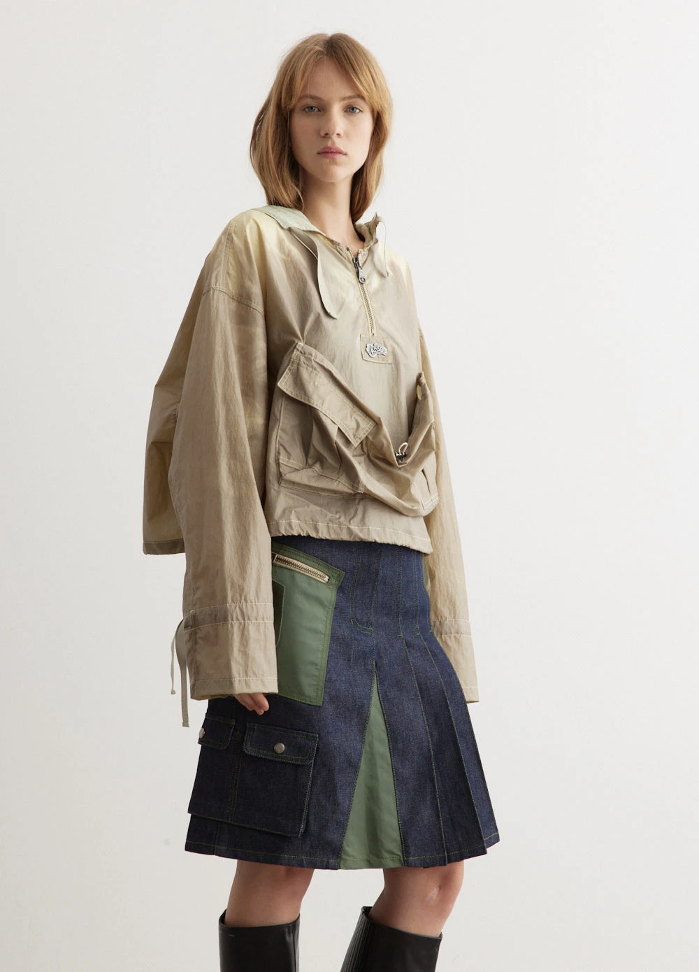 The identity of Andersson Bell was inspired by the merge of two contrasting cultures, reinterpreting Scandinavian aesthetic to create garments from a Korean perspective. Embracing the contemporary utility aesthetic, the Arina Lace-Up Anorak Shirt Jacket is designed with a faded effect, and contrast stitching.