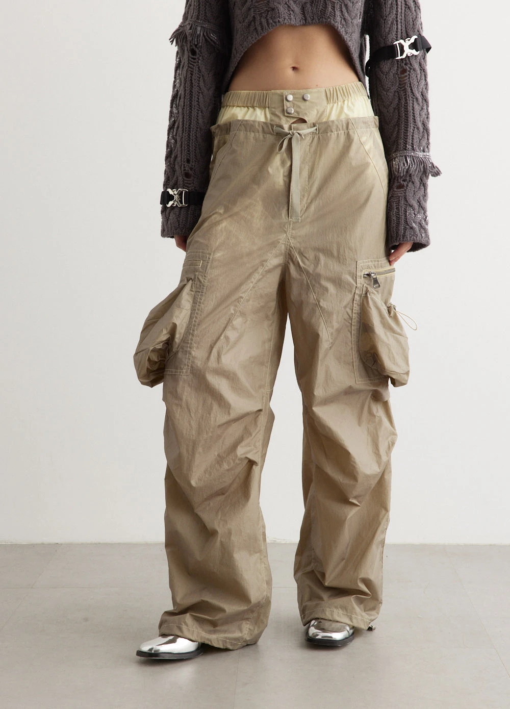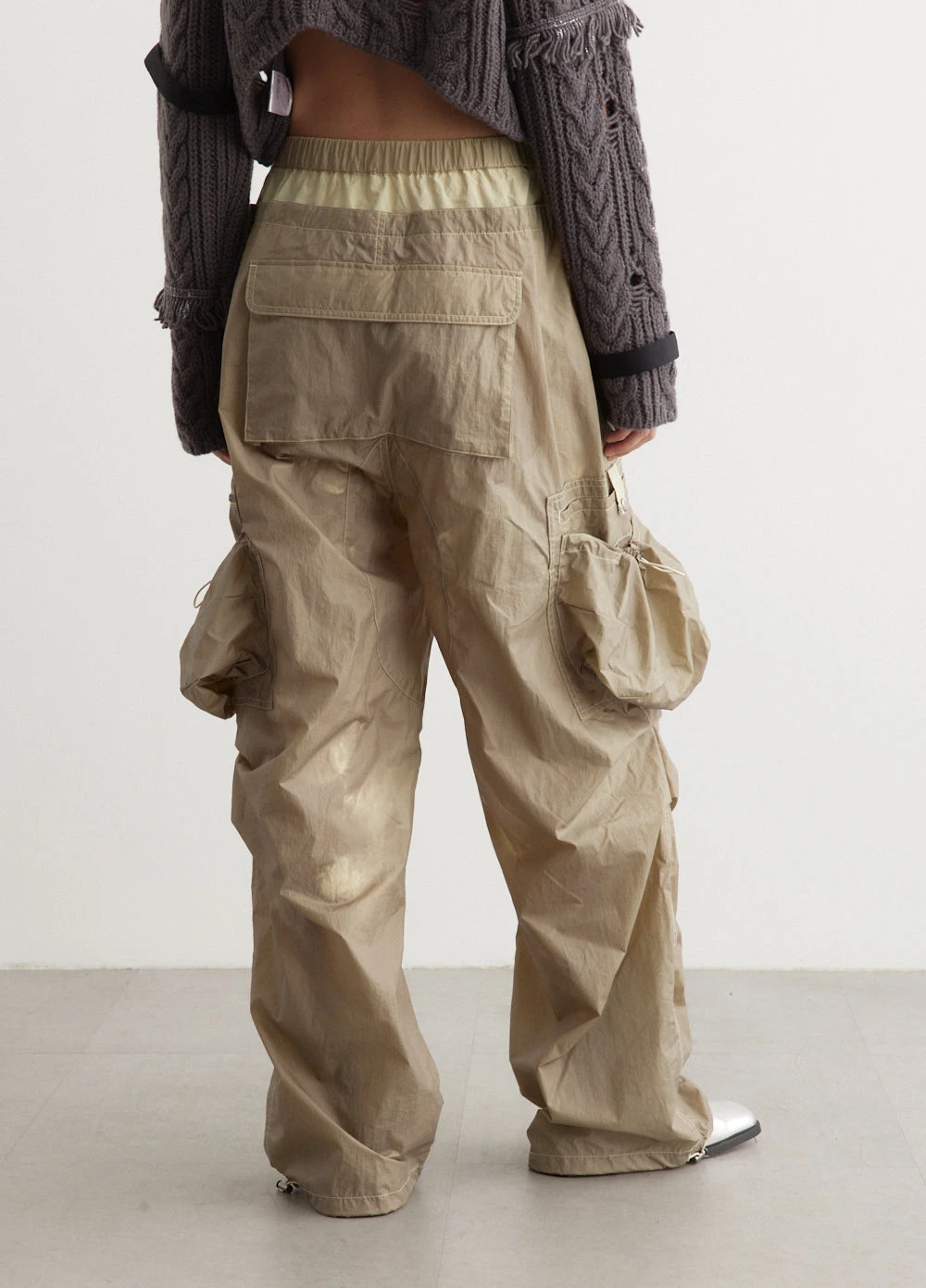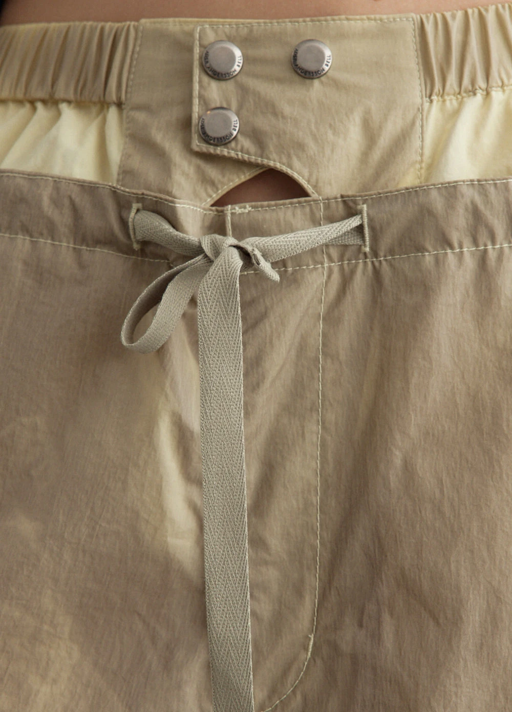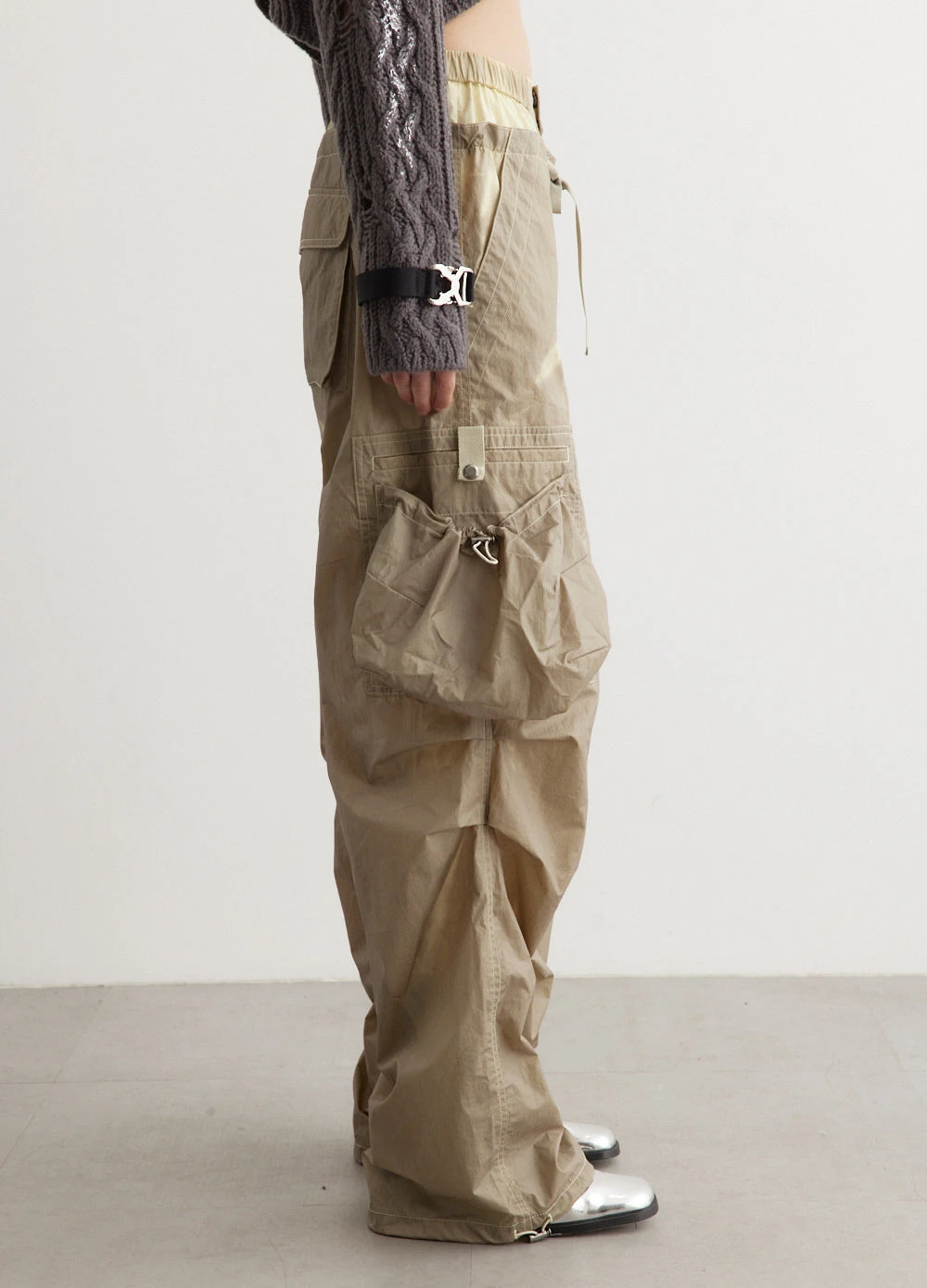 The identity of Andersson Bell was inspired by the merge of two contrasting cultures, reinterpreting Scandinavian aesthetic to create garments from a Korean perspective. Embracing the contemporary utility aesthetic, the Ballon Pocket Parachute Pants are designed with a panelled construction. Detailed with bungee-style drawstrings at cuffs and pockets.