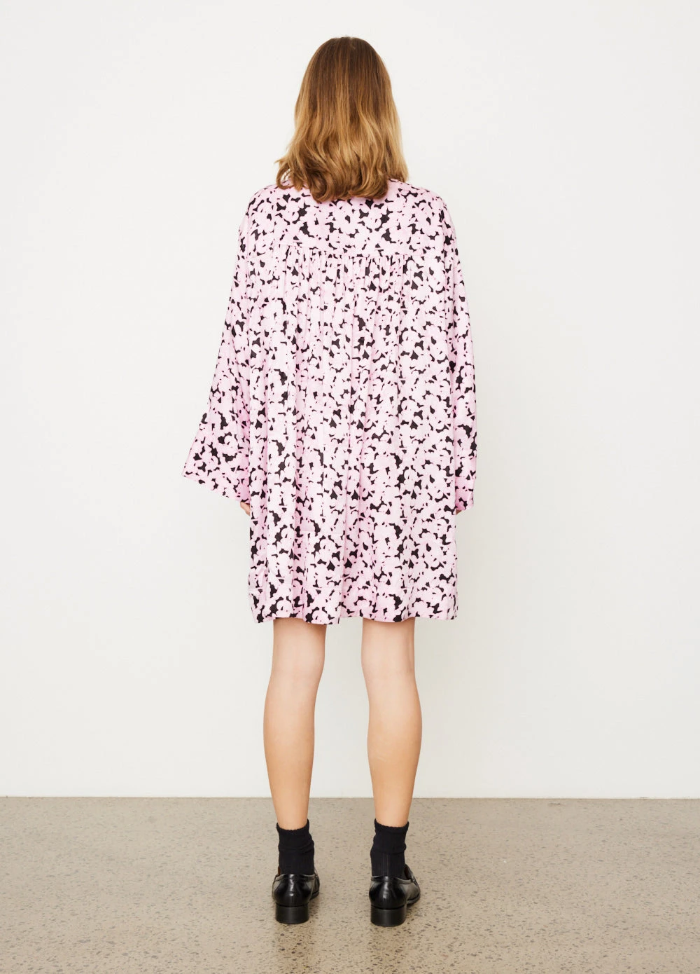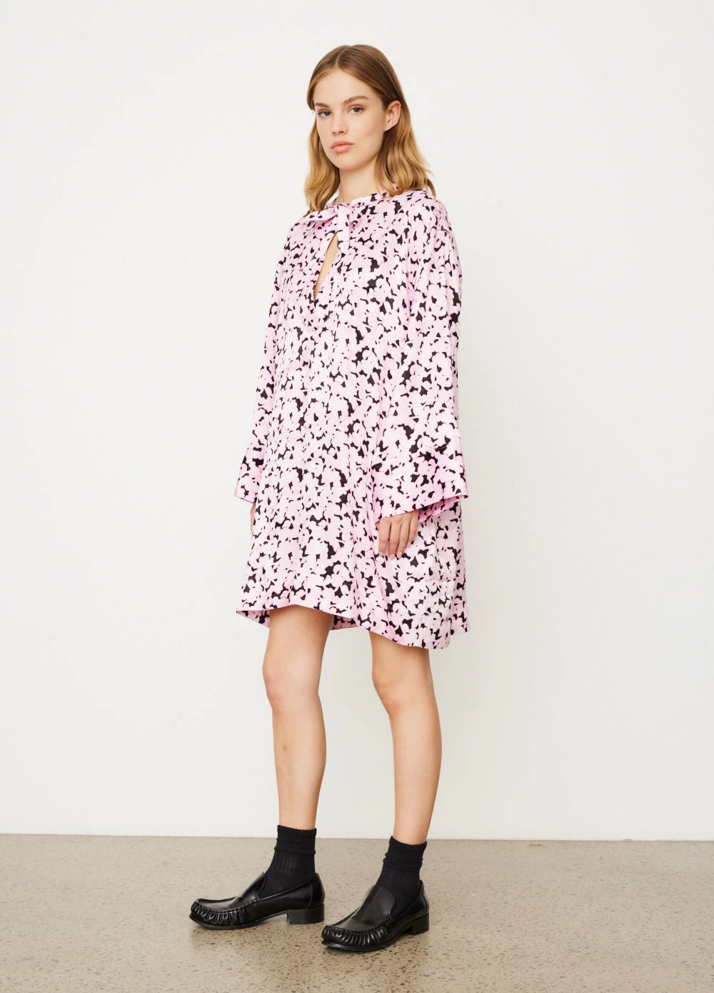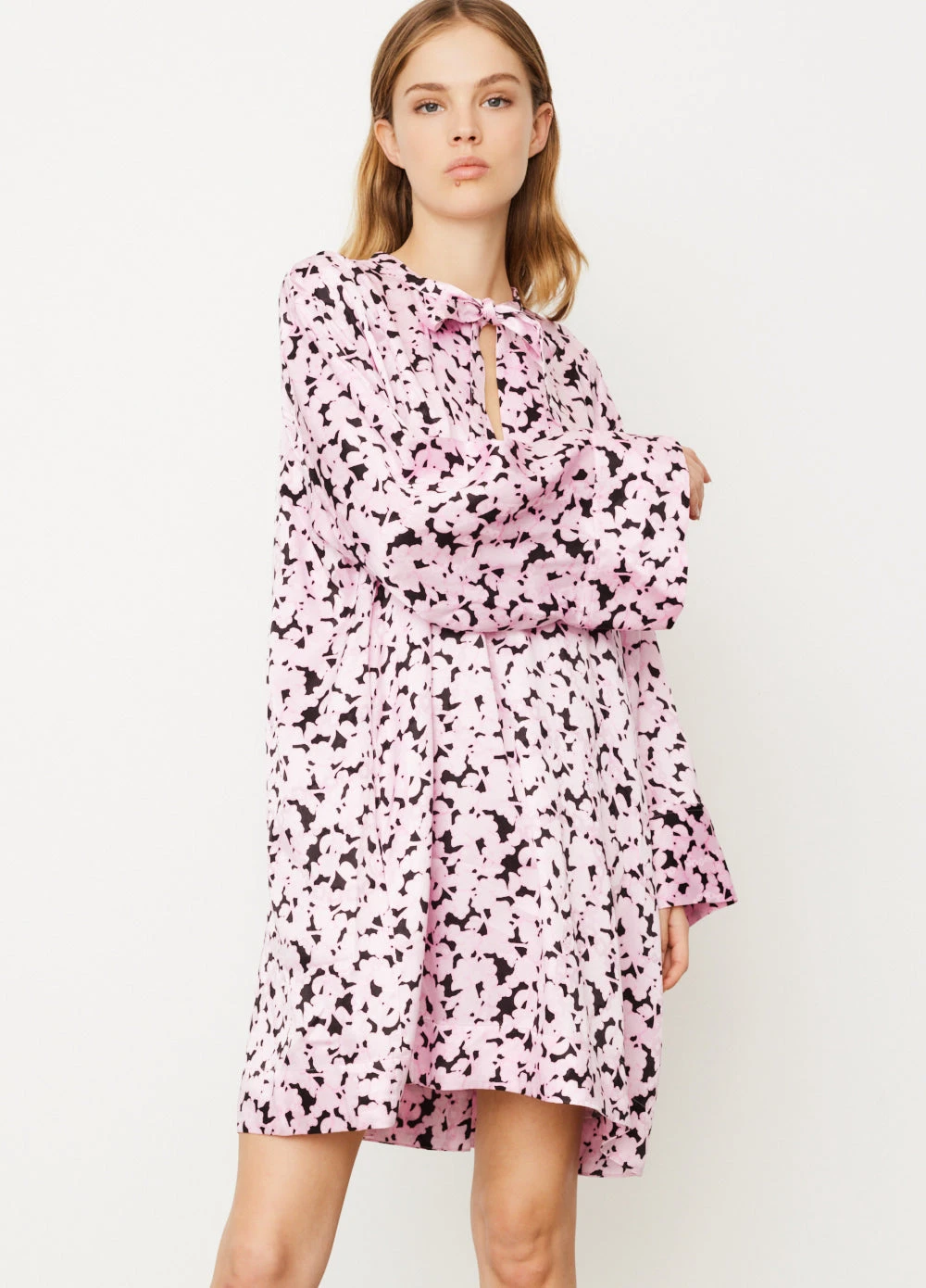 Brainchild of the designer duo Rikke Baumgarten and Helle Hestehave, Baum und Pferdgartenarten is the Danish label that blends modern feminine style with a playful sensibility. The Abi Dress a unique semi-structured mini-dress from Baum und Pferdgartenarten. With an all over print, oversized long sleeves and dipped hem, wear as a dress or over trousers as a tunic for a more casual look.