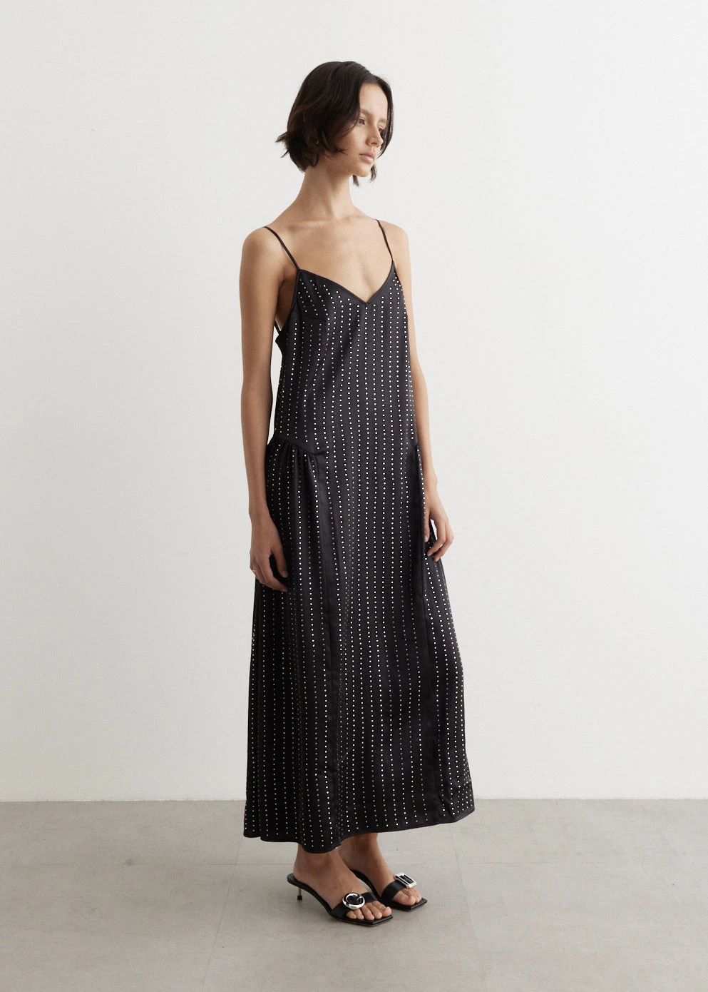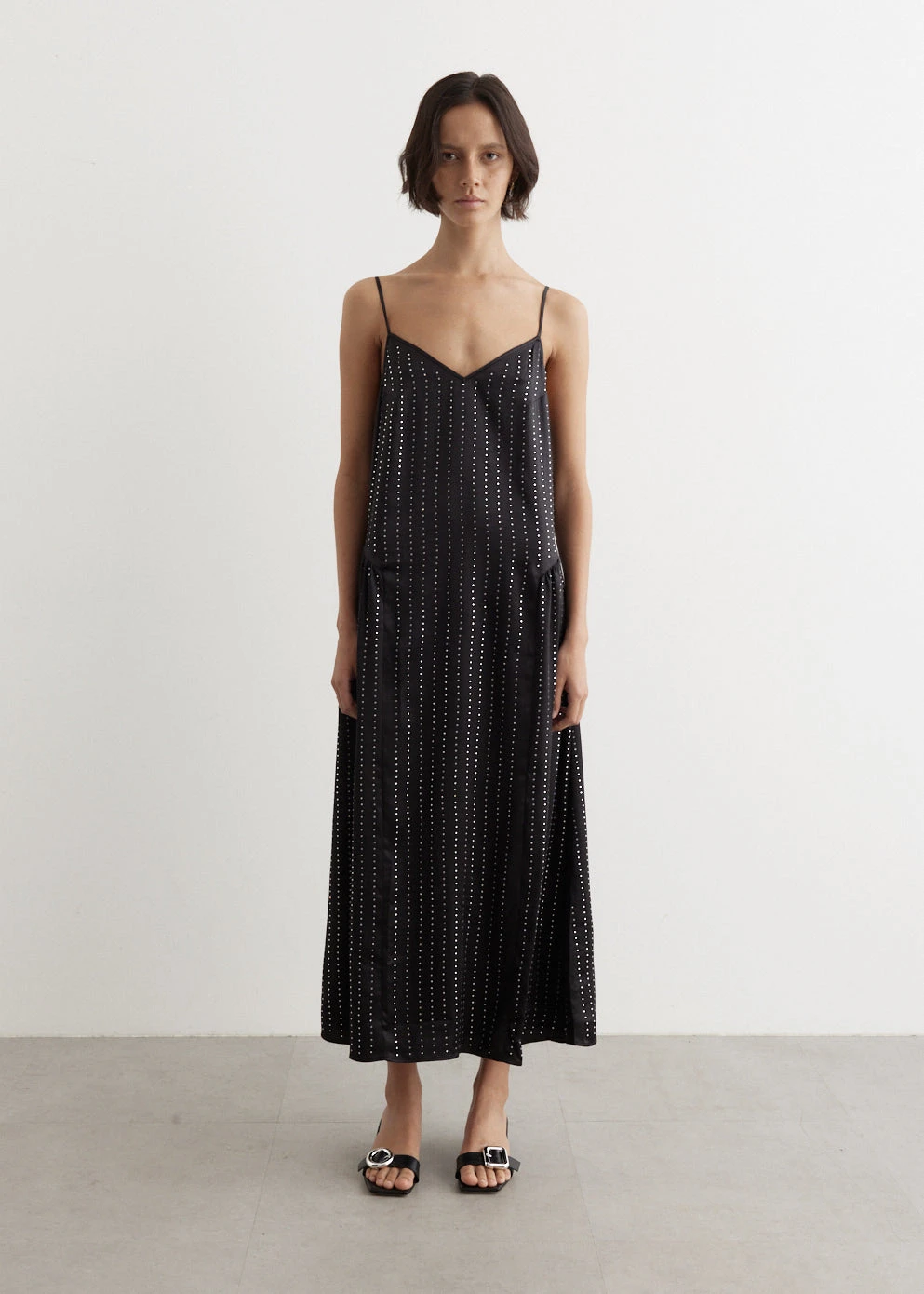 Brainchild of the designer duo Rikke Baumgarten and Helle Hestehave, Baum und Pferdgartenarten is the Danish label that blends modern feminine style with a playful sensibility. The Adele Dress features an eye-catching all-over crystal embellishment and is cut to a mid-length with a flattering draped silhouette.