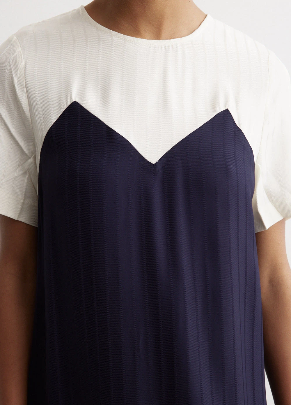 Brainchild of the designer duo Rikke Baumgarten and Helle Hestehave, Baum und Pferdgartenarten is the Danish label that blends modern feminine style with a playful sensibility. The Anwita Dress is a t-shirt-style dress that’s adorned with stripes throughout. It features a unique sweetheart-style neckline and includes side slits for a modern, stylish look.