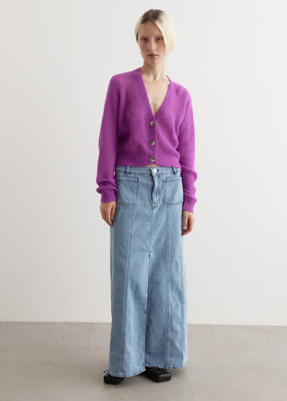 Brainchild of the designer duo Rikke Baumgarten and Helle Hestehave, Baum und Pferdgartenarten is the Danish label that blends modern feminine style with a playful sensibility. Knitted from a mohair-merino wool blend, the Caya Cardigan is a timeless addition to your wardrobe. This cardigan effortlessly adds a touch of colour to any outfit.