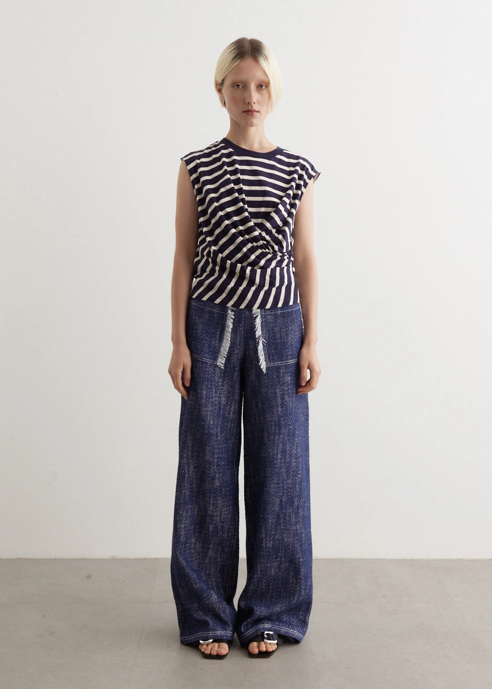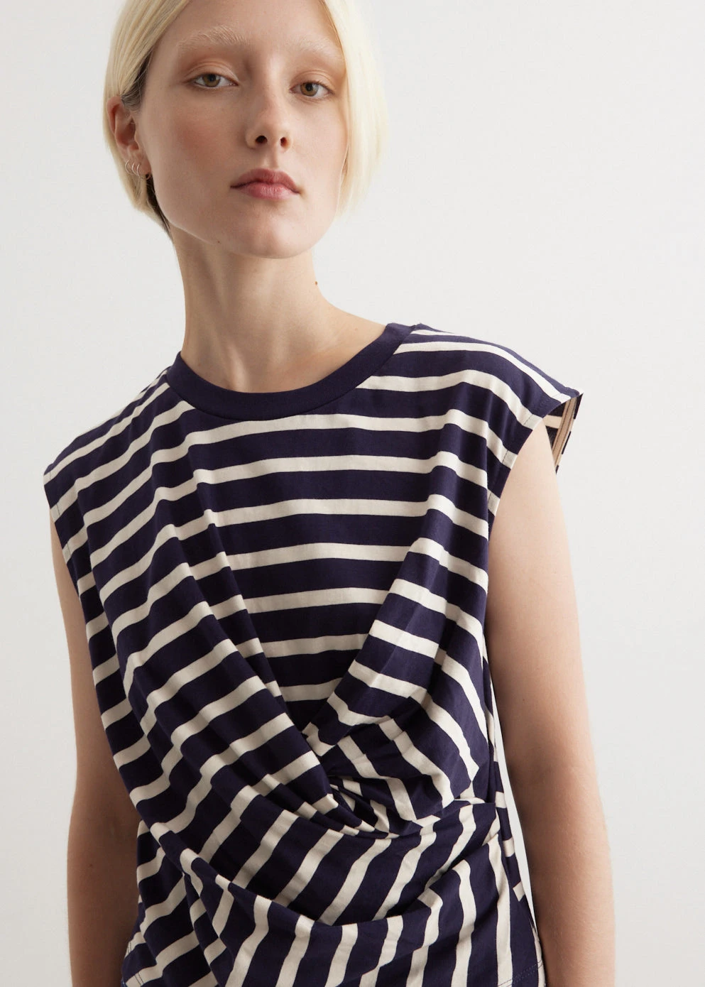 Brainchild of the designer duo Rikke Baumgarten and Helle Hestehave, Baum und Pferdgartenarten is the Danish label that blends modern feminine style with a playful sensibility. Made from organic cotton, the Jaliyah Top is cut to a cropped, slim fit and is adorned with an all-over stripe pattern. It features a draped front with knotted detailing on the sides for an elevated finish.Â