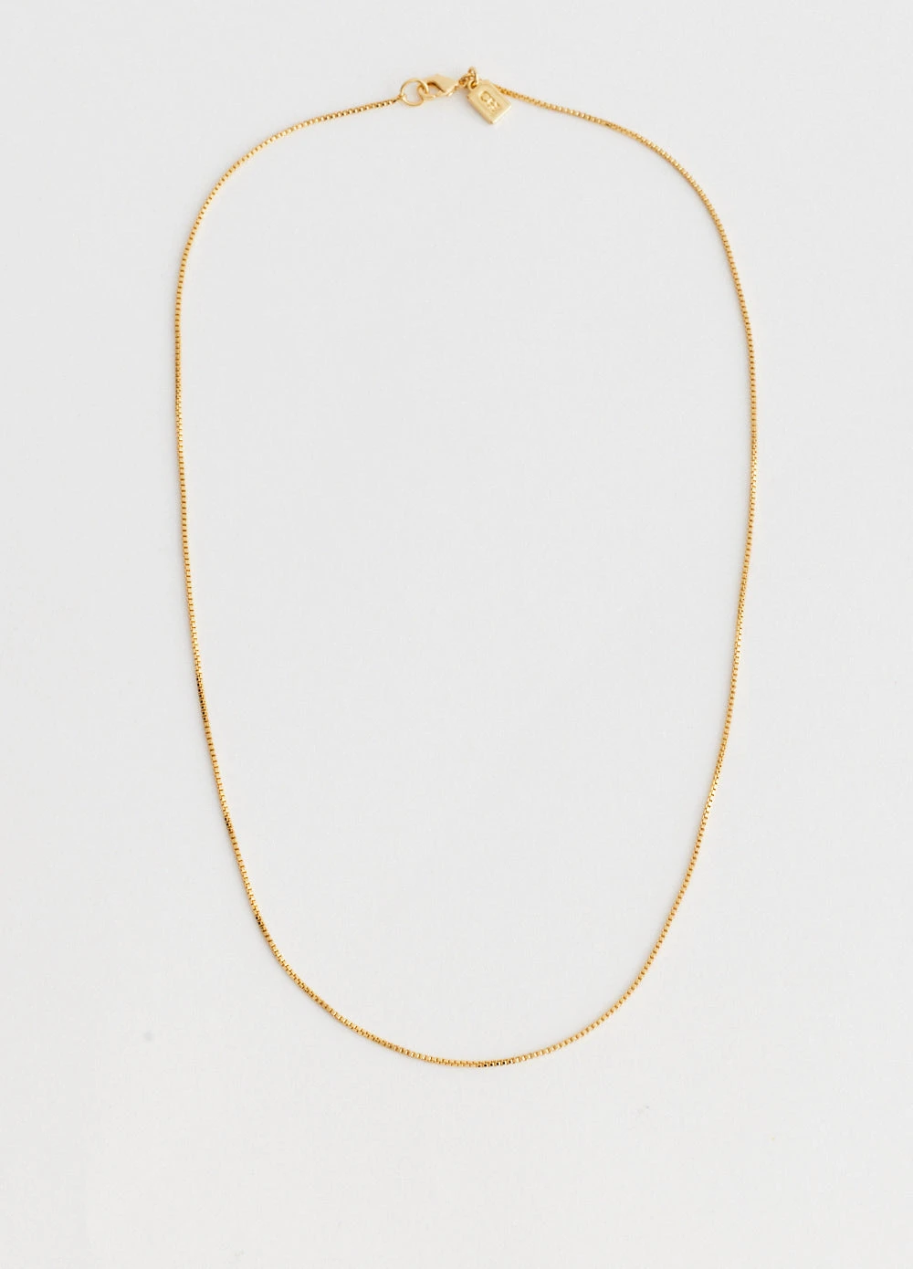 Crystal Haze, founded by Ophelia Alickaj and Sara Vlatkovic in 2017, is a Norwegian jewellery brand based in Oslo. Partnering with local, family-owned businesses, selecting gemstones from Brazil, the brand’s designs draw on fond memories of childhood, to create jewellery that conveys a lighthearted and elegant aesthetic. Made from 18k gold-plated brass, the Box Chain Necklace is a perfect choice for accessorising with the label’s pendants.