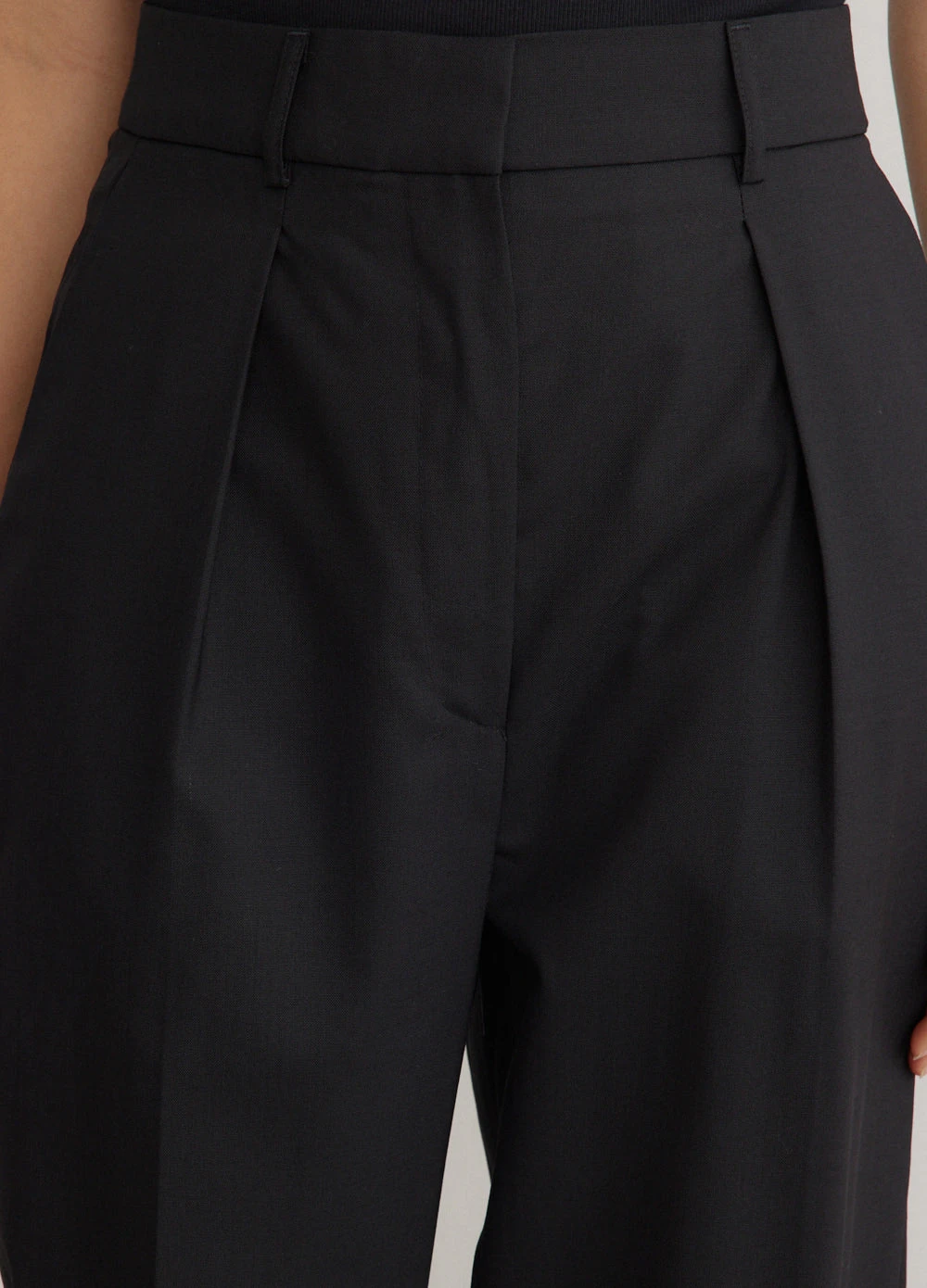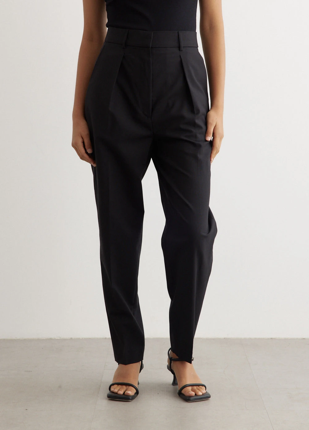 Róhe was birthed out of Amsterdam with particular attention on creating modern, timeless clothing that transcends seasons. Expertly crafted from a wool blend fabric, the Carrot Fit Single Pleat Trousers are tailored to a tapered fit. Featuring a single pleat down the centre, two side pockets and zip, hook and eye closure.Â