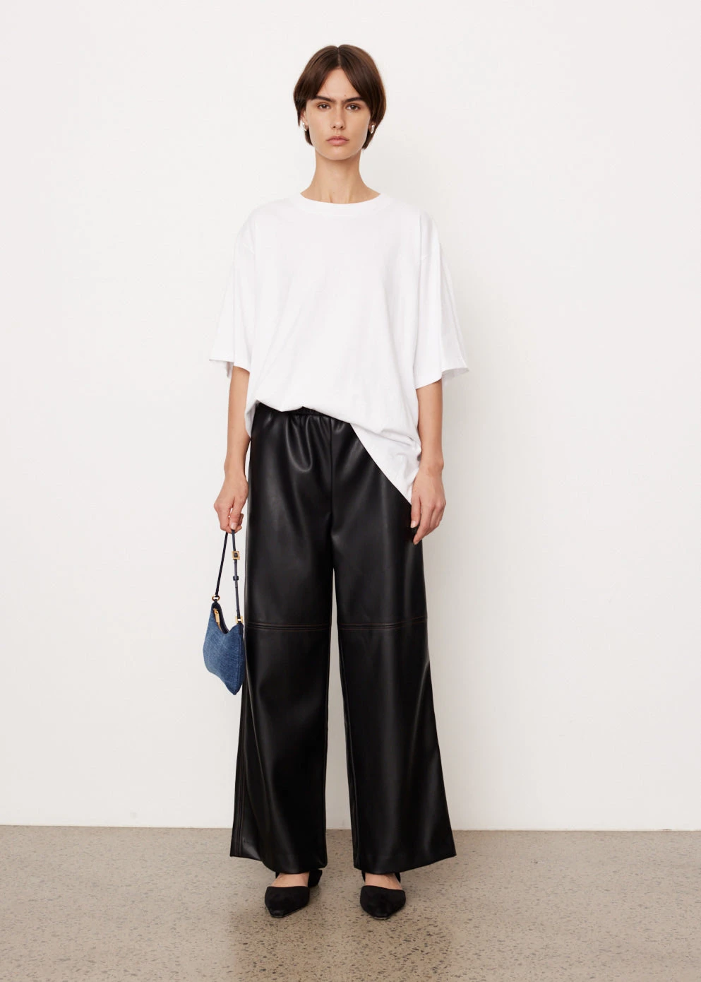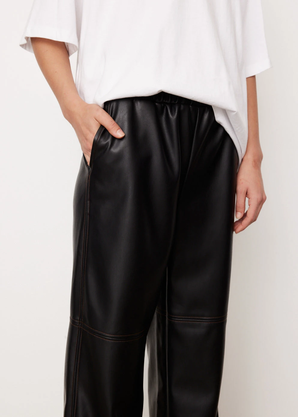 Lean into the colder days with Incu Collection’s latest collection that reflects a sense of youth balanced against heritage. A sophisticated range that explores winter elements of quilts and puffers, mohair and knits contrasted against strong, timeless tailoring with playful prints in a varied and diverse colour palette. The Claudia Vegan Leather Pants are cut to a relaxed, straight leg and is finished with contrast topstitching details.