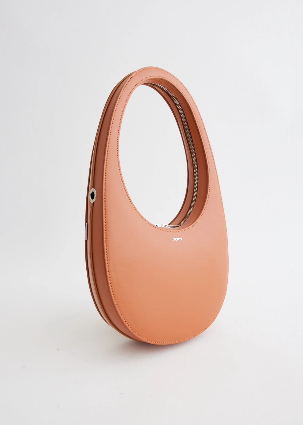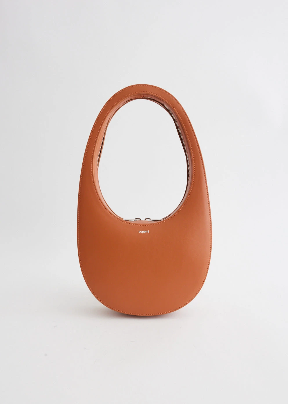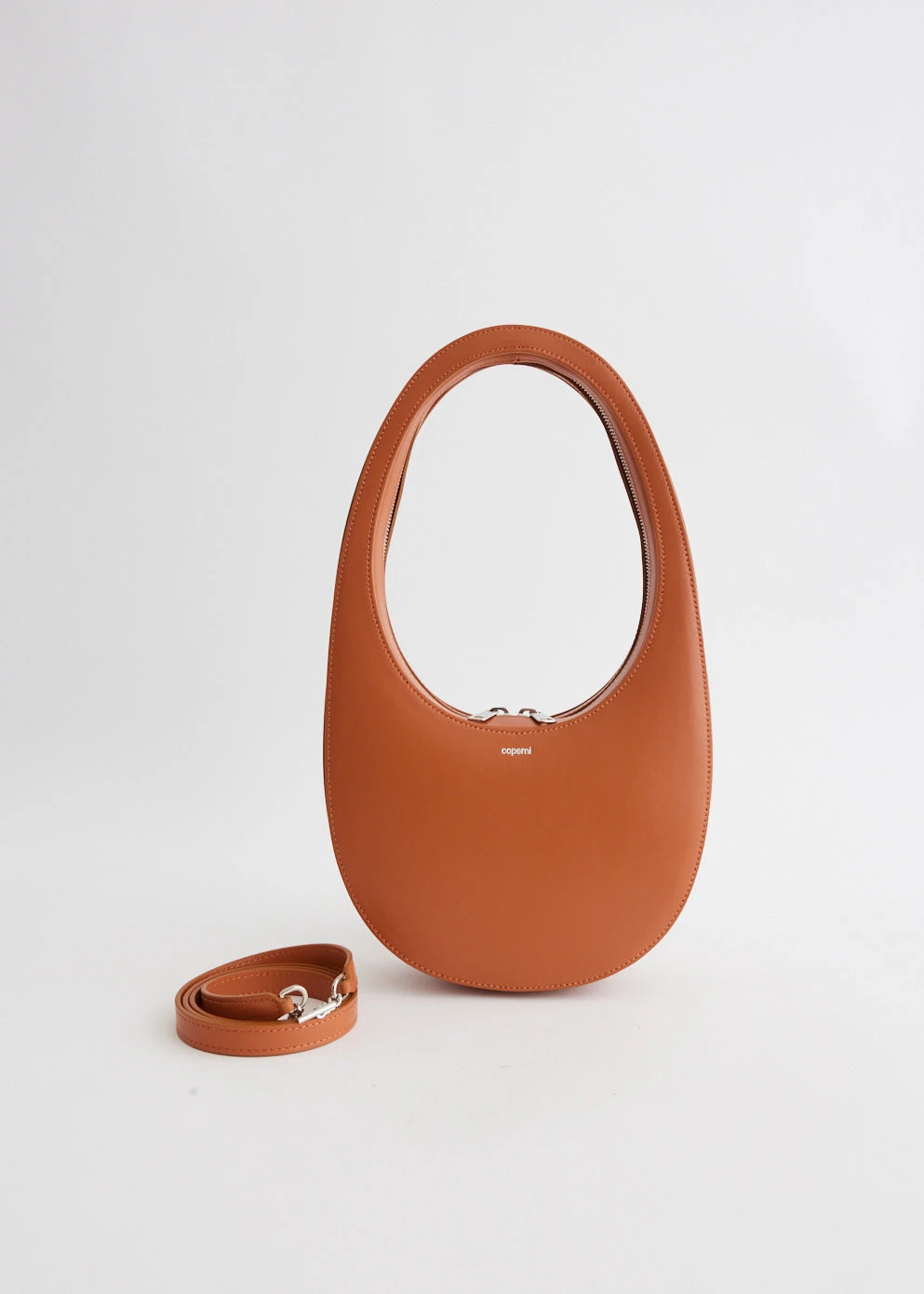 Coperni was established in Paris in 2013 by Sébastien Meyer and Arnaud Vaillant. The brand’s sleek version of minimalism is heavily influenced by the digital age, with a particular focus on asymmetry and structure. An iconic shape from the brand is the Crossbody Swipe Bag, which is modelled on the ‘swipe to unlock’ button on the iPhone. It is made from premium Italian leather and features both a handle and a removable crossbody strap.