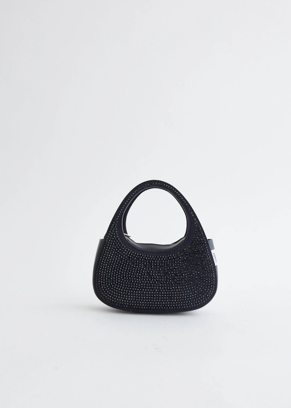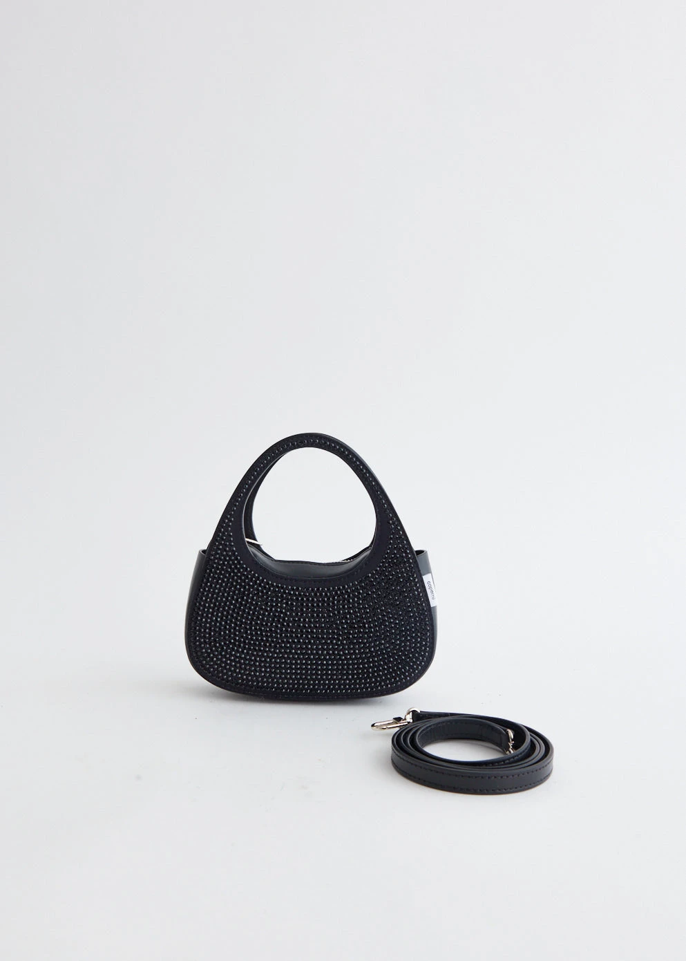Coperni was established in Paris in 2013 by Sébastien Meyer and Arnaud Vaillant. The brands sleek version of minimalism is heavily influenced by the digital age, with a particular focus on asymmetry and structure. Part of the brand’s iconic Swipe Bag range, the Crystal-Embellished Micro Baguette Swipe Bag is an elongated, baguette version of the classic Mini Swipe Bag. Updated with an all-over crystal embellishment, it features a structured handle and removable strap.