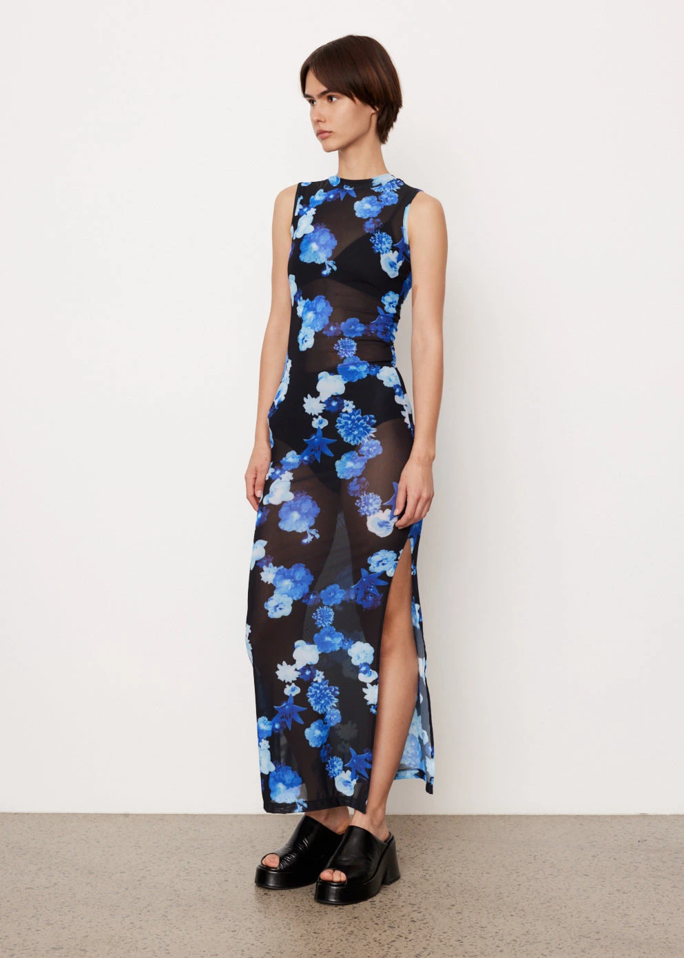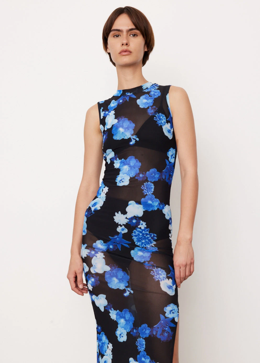 Coperni was established in Paris in 2013 by Sébastien Meyer and Arnaud Vaillant. The brand’s sleek version of minimalism is heavily influenced by the digital age, with a particular focus on asymmetry and structure. This body-hugging Flower Print Mesh Dress features mesh printed blue and white blooms inspired by the brands Bespoke Holographic SS23 print.Â