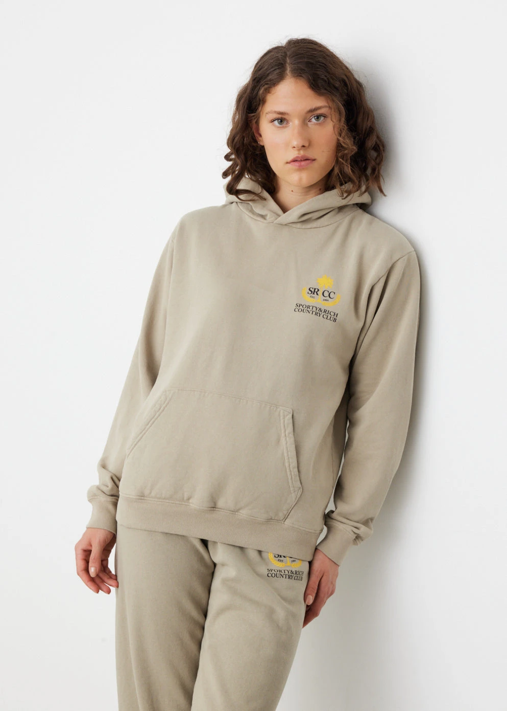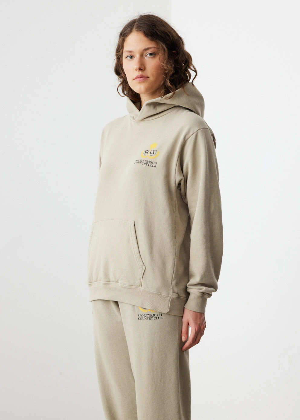 Inspired by luxury sportswear, Sporty & Rich create premium staples that promote health and well-being. This Country Club Hoodie is cut to a relaxed fit and features printed branding on the heart with a kangaroo pouch pocket and ribbed trims. Coordinate with the California Bike Shorts and Steffey Sneakers for a tonal, athletic look.