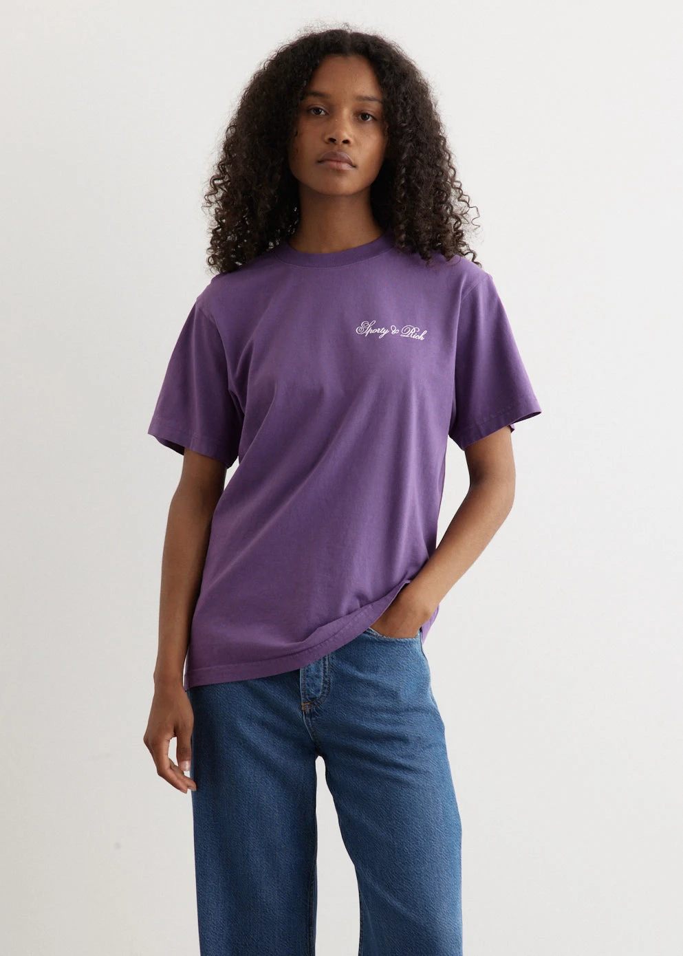 All about health and wellness, Sporty & Rich is the Los Angeles-based label that prides itself on sustainability, quality and a distinct ’90s-inspired sports aesthetic. Crafted from cotton, the Cursive Logo T-Shirt is a classic silhouette from the label that’s adorned with a cursive-style logo on the heart.