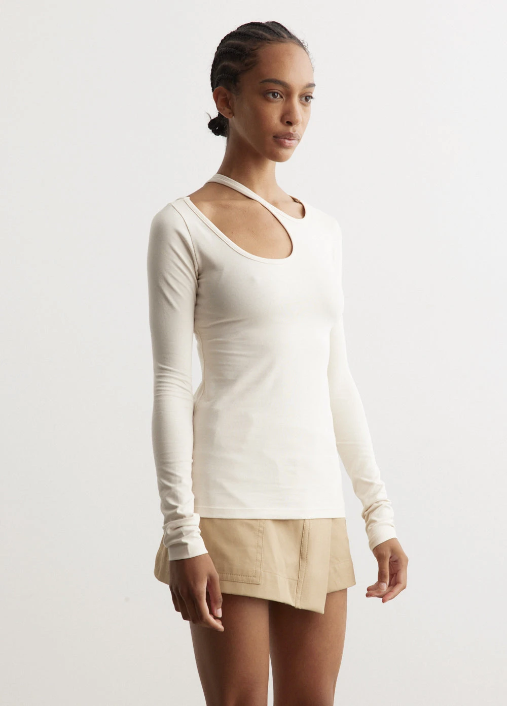 Birthed in Seoul, Low Classic’s philosophy revolves around beauty through simplicity and is delivered via updated, classic silhouettes. The Curve Hole T-Shirt has a fitted silhouette, with a cutout feature at the shoulder.Â