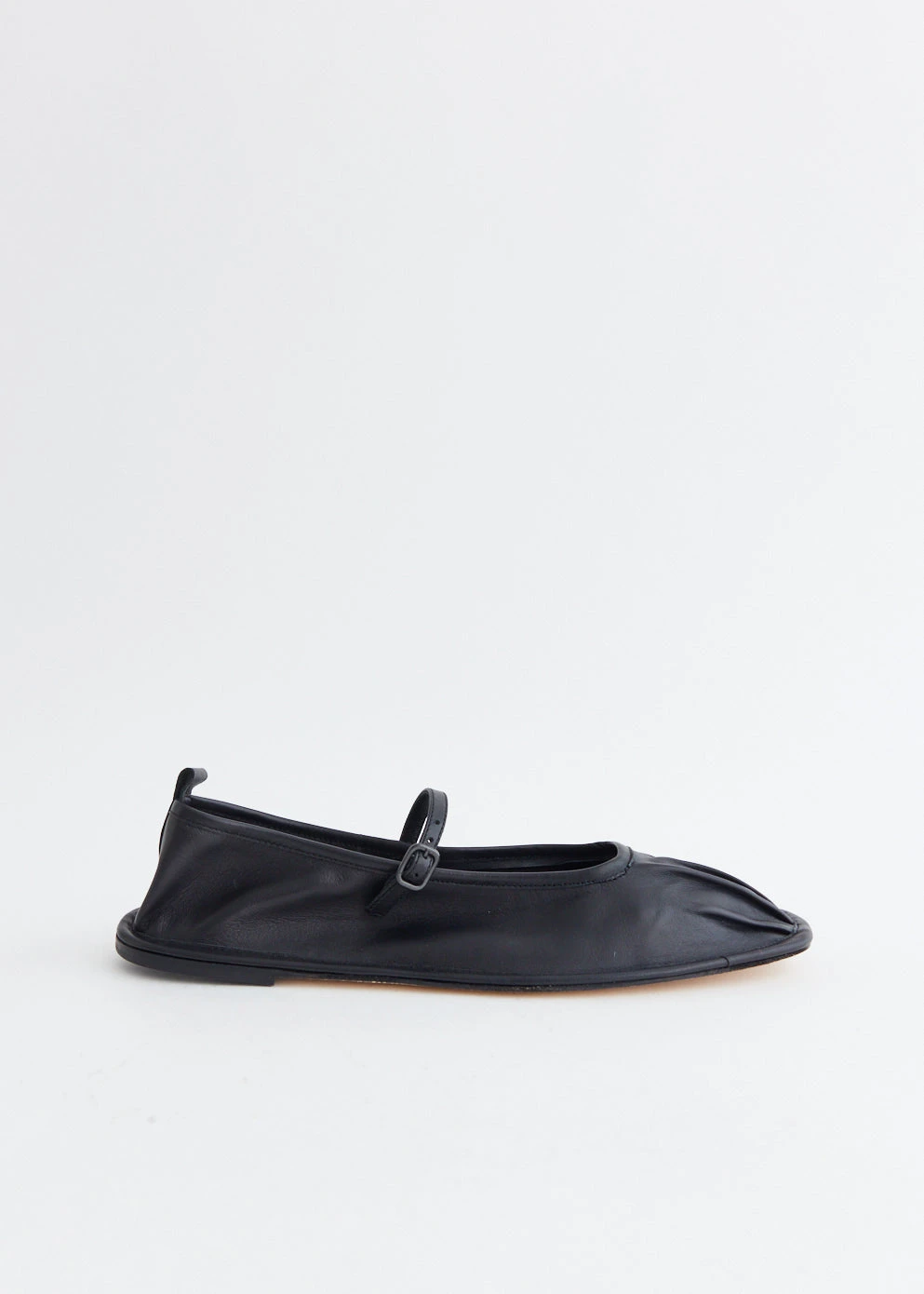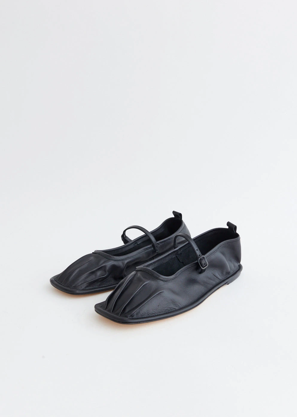 Founded by José Luis Bartolomé and Albert Escribano, Hereu offers a collection of leather shoes and accessories that are inspired by the eclectic energy, heritage and beauty of their home region in the Mediterranean. Crafted in Italian supple lambskin, the Dansa Flats are designed with a pleated toe, with a Mary Jane silhouette.
