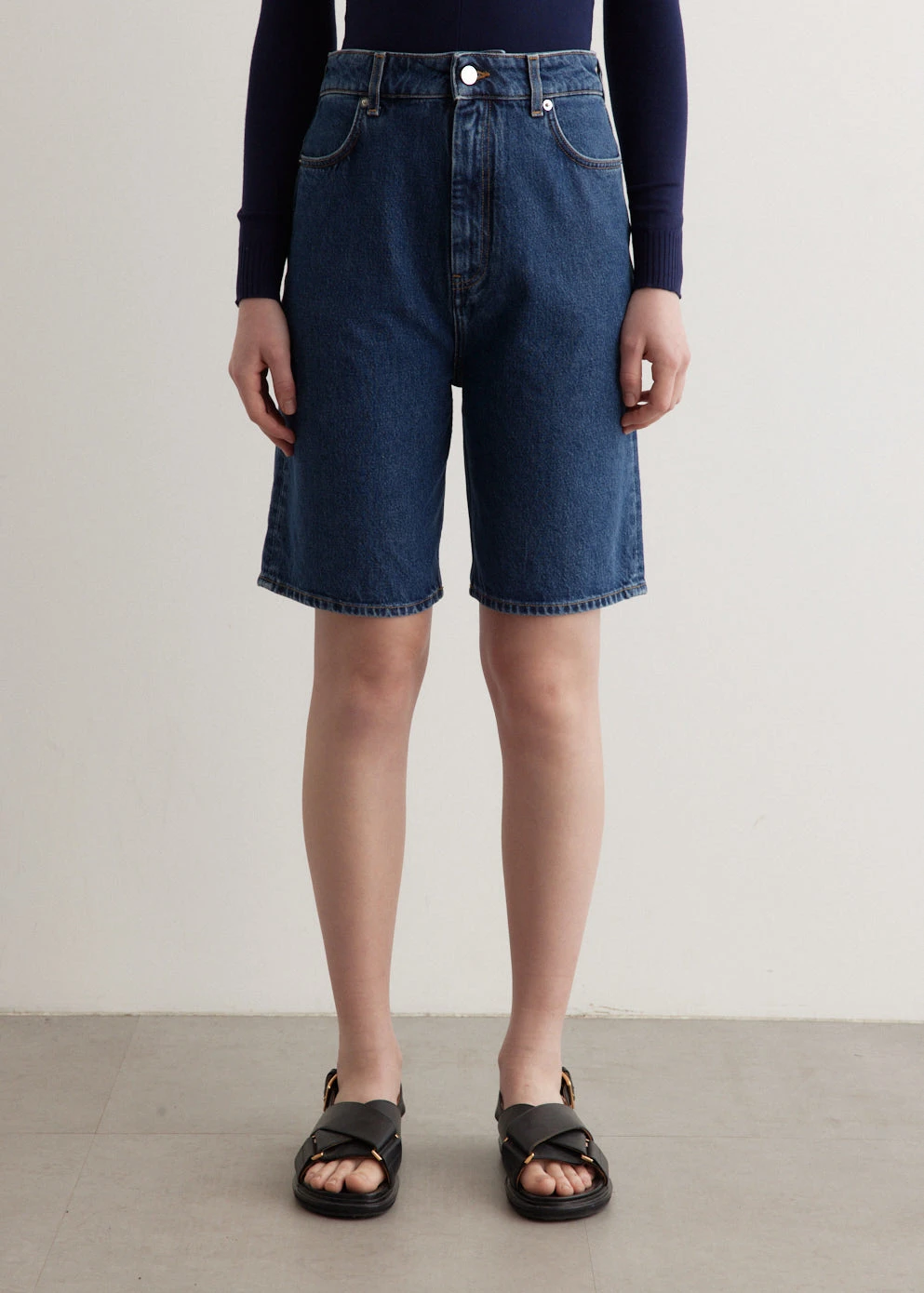 Founded by Parisian influencer Chloé Harrouche, Loulou Studio has a repertoire that consists of classic silhouettes and distinguished fabrics. The collections are full of soft neutrals and careful tailoring. Crafted from midweight denim, the Denim Shorts are cut to a wide leg with a relaxed fit.
