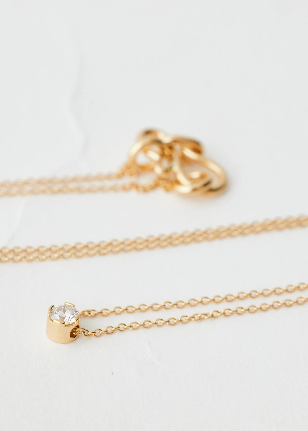 The Diamant Necklace by Sophie Bille Brahe features exquisite 0.12 carat Top Wesselton VVS diamonds set in an 18K yellow gold signature prong setting on chain.