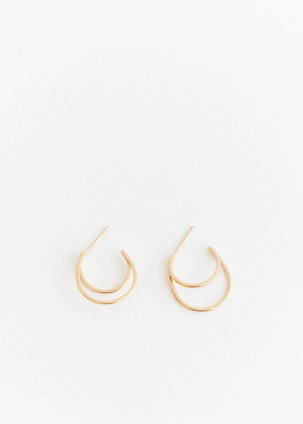 Curated to exude confidence and energy, Incu welcomes their ‘Incu Jewellery’ collection. Enhance your uniqueness with these vibrant and dynamic pieces for a timeless aesthetic. Crafted in 18k gold-plating, the Double Slim Hoop Earrings boasts an round design, double hoop silhouette.Â