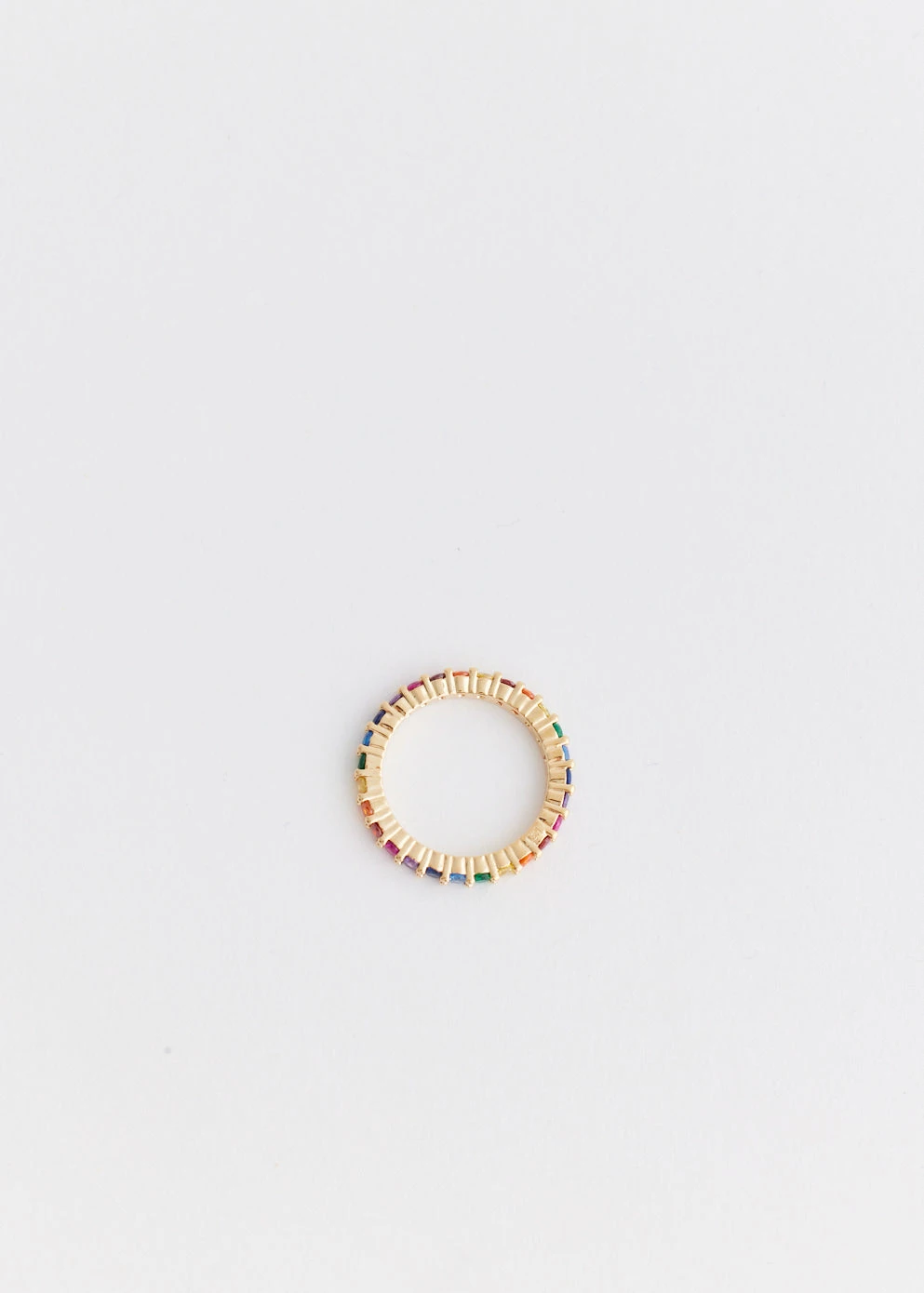 Curated to exude confidence and energy, Incu welcomes their ‘Incu Jewellery’ collection. Enhance your uniqueness with these vibrant and dynamic pieces for a timeless aesthetic. Crafted in 18k gold-plating, the Eliana Ring is adorned with multicoloured crystals around the band.