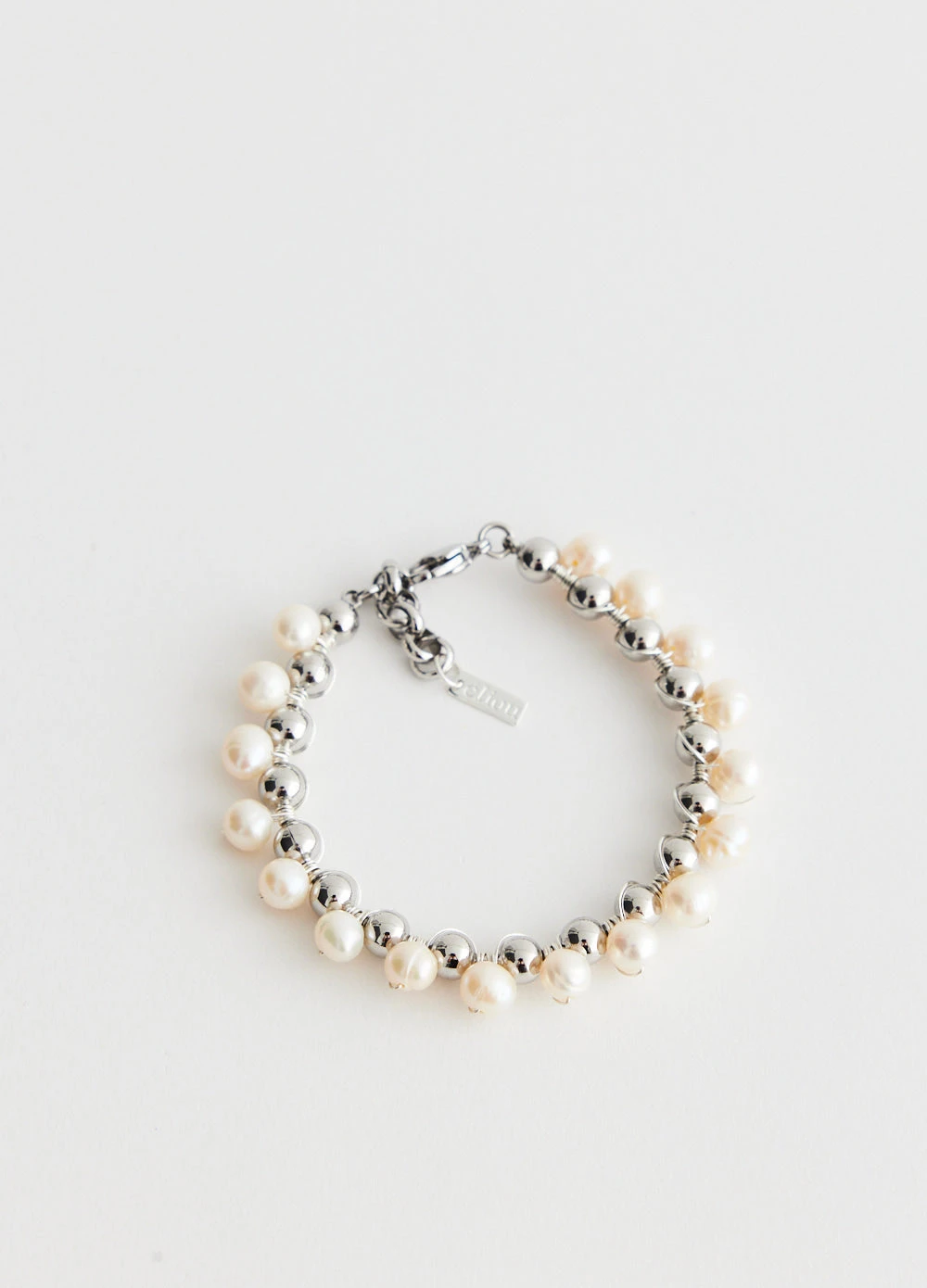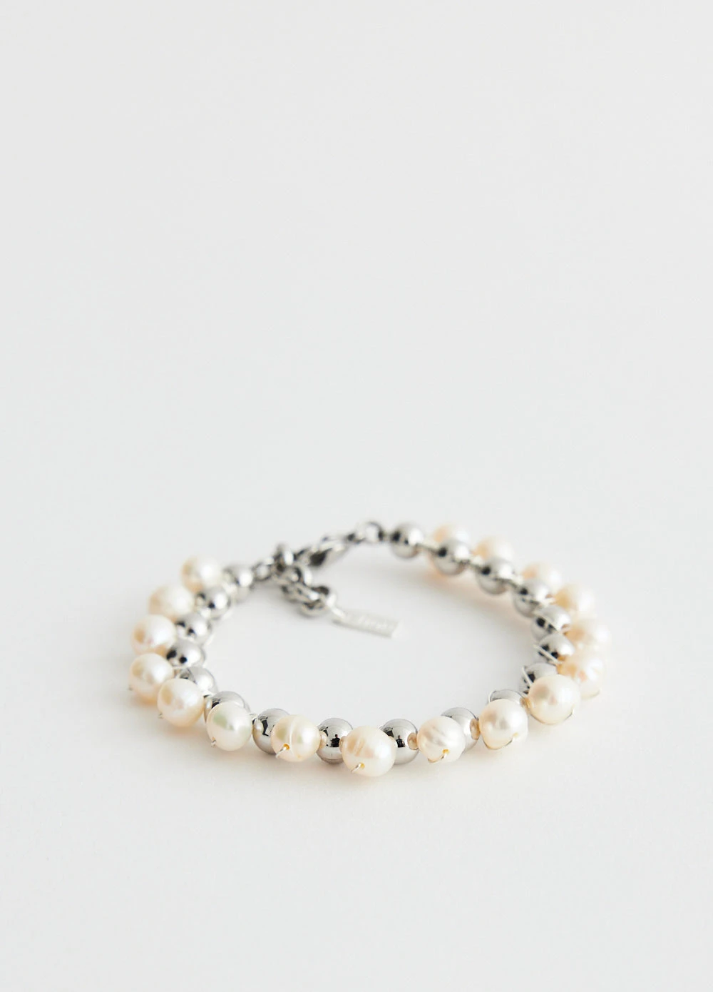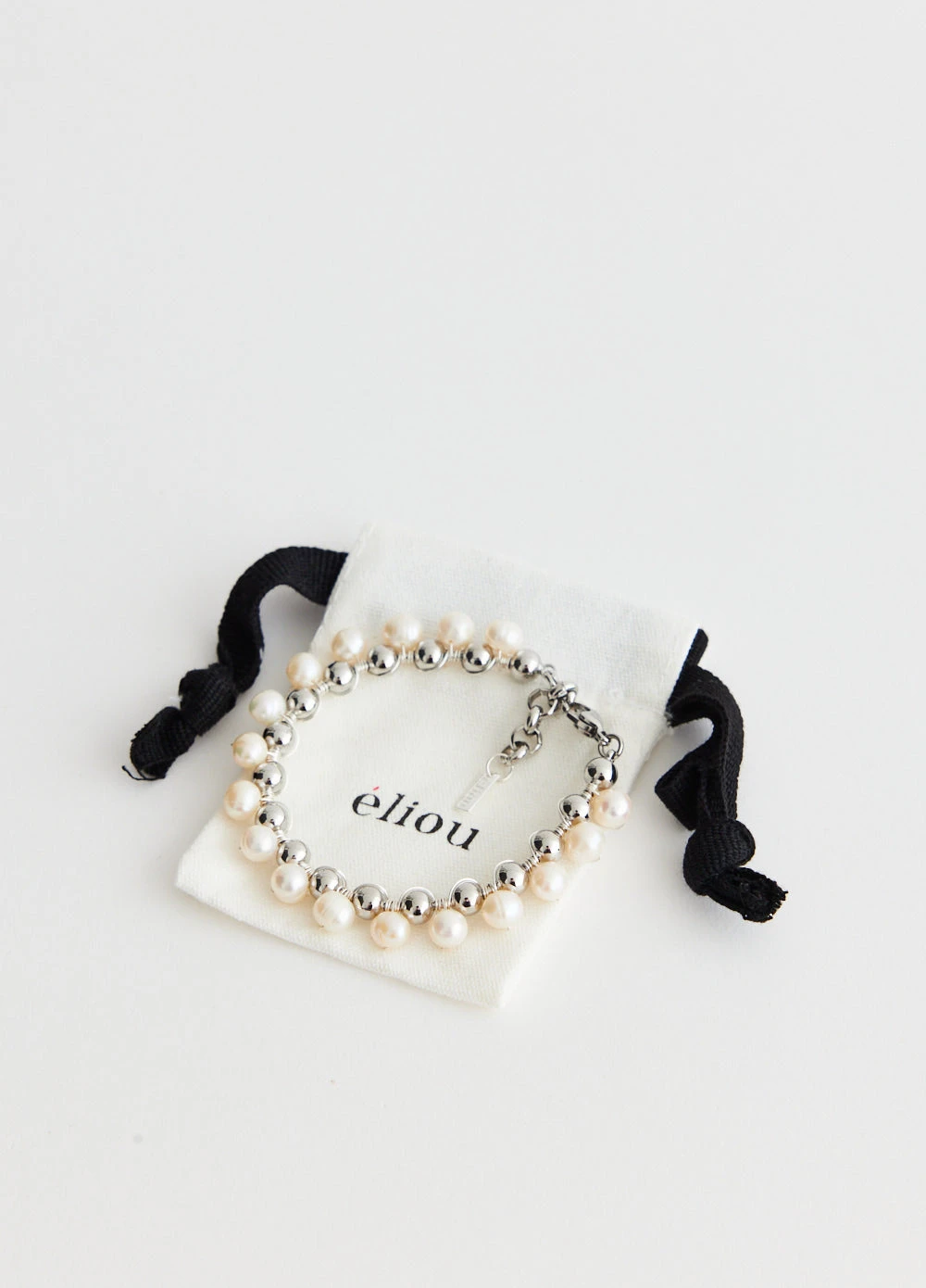 Devoted travellers and designers, Cristina Mantilla and Duda Teixeira from Eliou translate their fascination with the natural elements of the beach into their handcrafted designs. The Elter Bracelet is a silver plated ball and chain bracelet enveloped by freshwater pearls.
