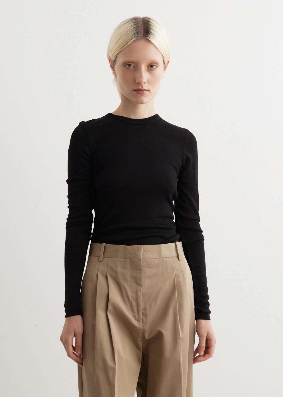 Róhe was birthed out of Amsterdam with particular attention on creating modern, timeless clothing that transcends seasons. The Fine Merino Long Sleeve is the perfect layering piece crafted from a fine merino wool. Featuring a crew neckline and is made for a close fit.