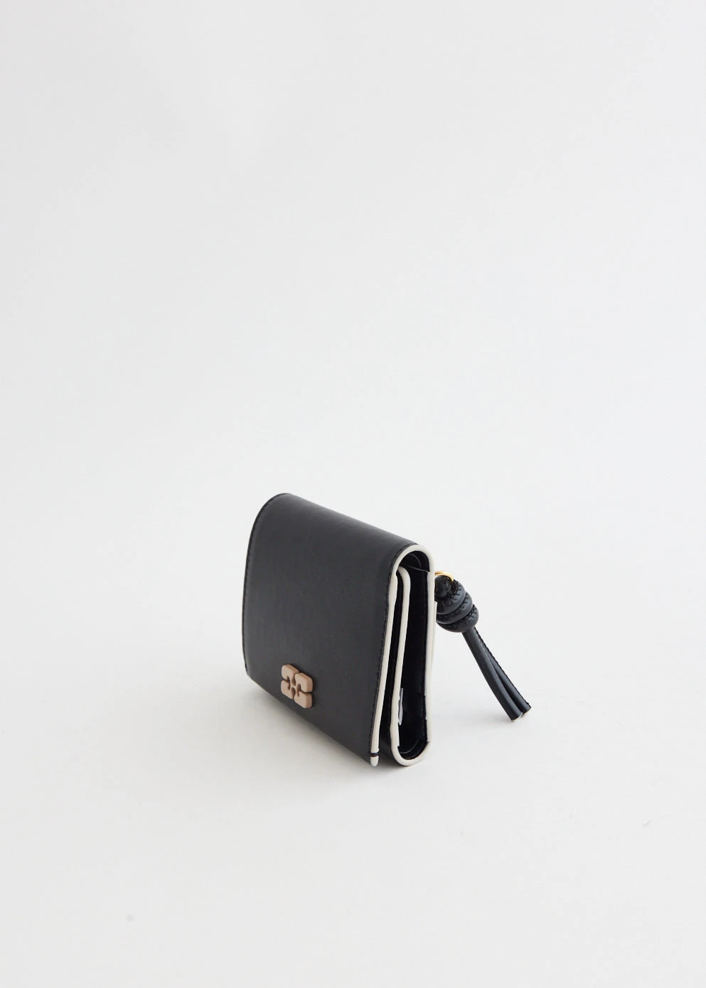 Danish label Ganni blends streetwear trends with a playful touch of humour through bold prints and colour palettes, voluminous silhouettes and easy-to-wear fabrics. Made from soft, recycled leather,  the Bou Trifold Wallet features a front-zip pocket and multiple interior card slots. This flap wallet design is embellished with the GANNI Butterfly logo, lending a branded touch to its look.
