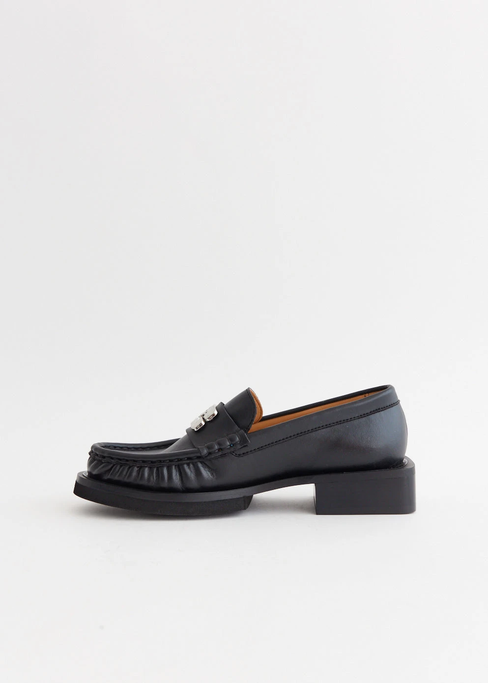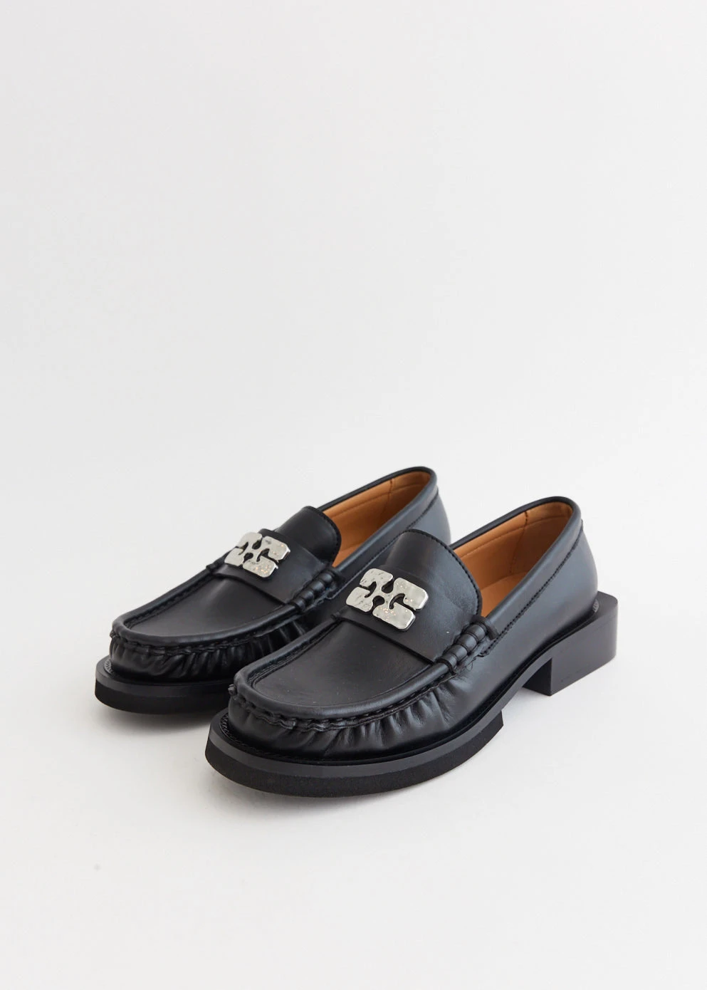 Danish label Ganni blends streetwear trends with a playful touch of humour through bold prints and colour palettes, voluminous silhouettes and easy-to-wear fabrics. Crafted from smooth leather, the Butterfly Logo Loafers are a classic silhouette that offers a chic aesthetic with a GANNI Butterfly motif with rhinestones.