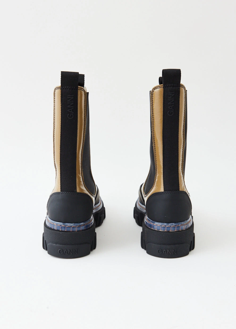 Ganni add signature flair to a classic Chelsea style with this chunky rendition. The premium leather uppers finish at mid-calf height and feature a large elastic gusset, rubber toe cap and chunky lugged soles. Pull tabs and subtle Ganni branding on the heel tape finish the authentic design.