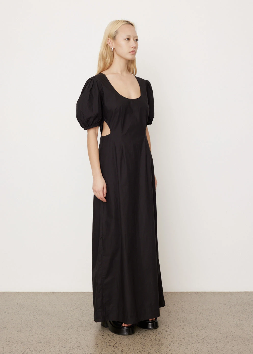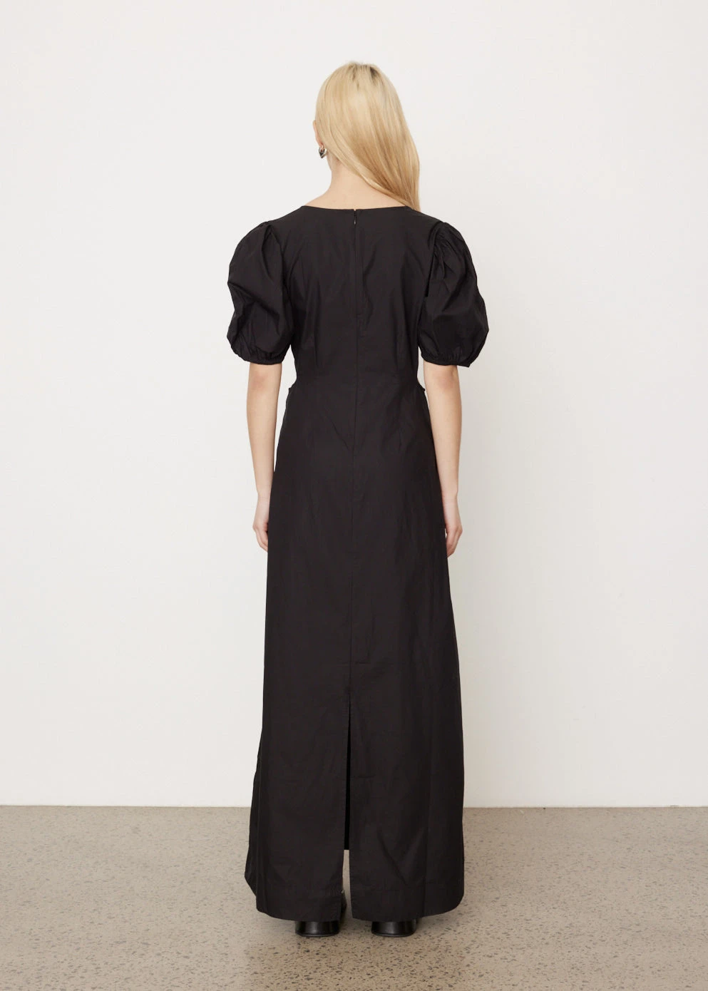 Danish label Ganni blends streetwear trends with a playful touch of humour through bold prints and colour palettes, voluminous silhouettes and easy-to-wear fabrics. Crafted from organic cotton, the Cotton Poplin Cutout Dress is a calf-length silhouette thats detailed with sidecut-out details.