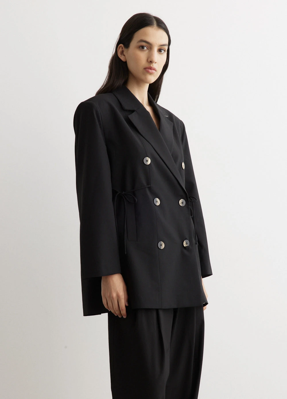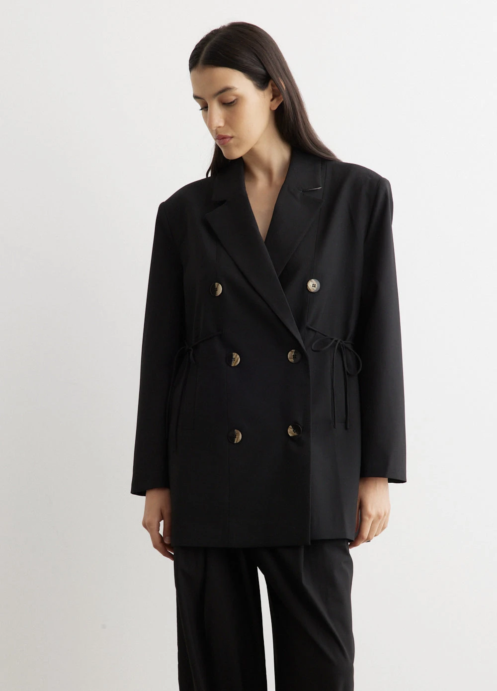 – Double-breasted silhouette