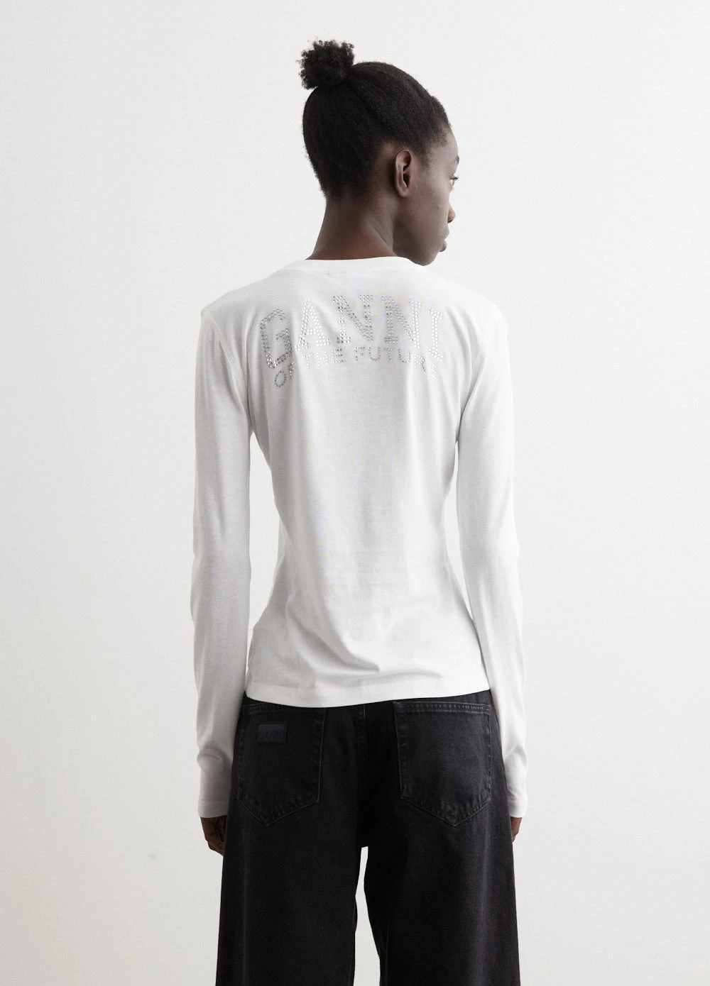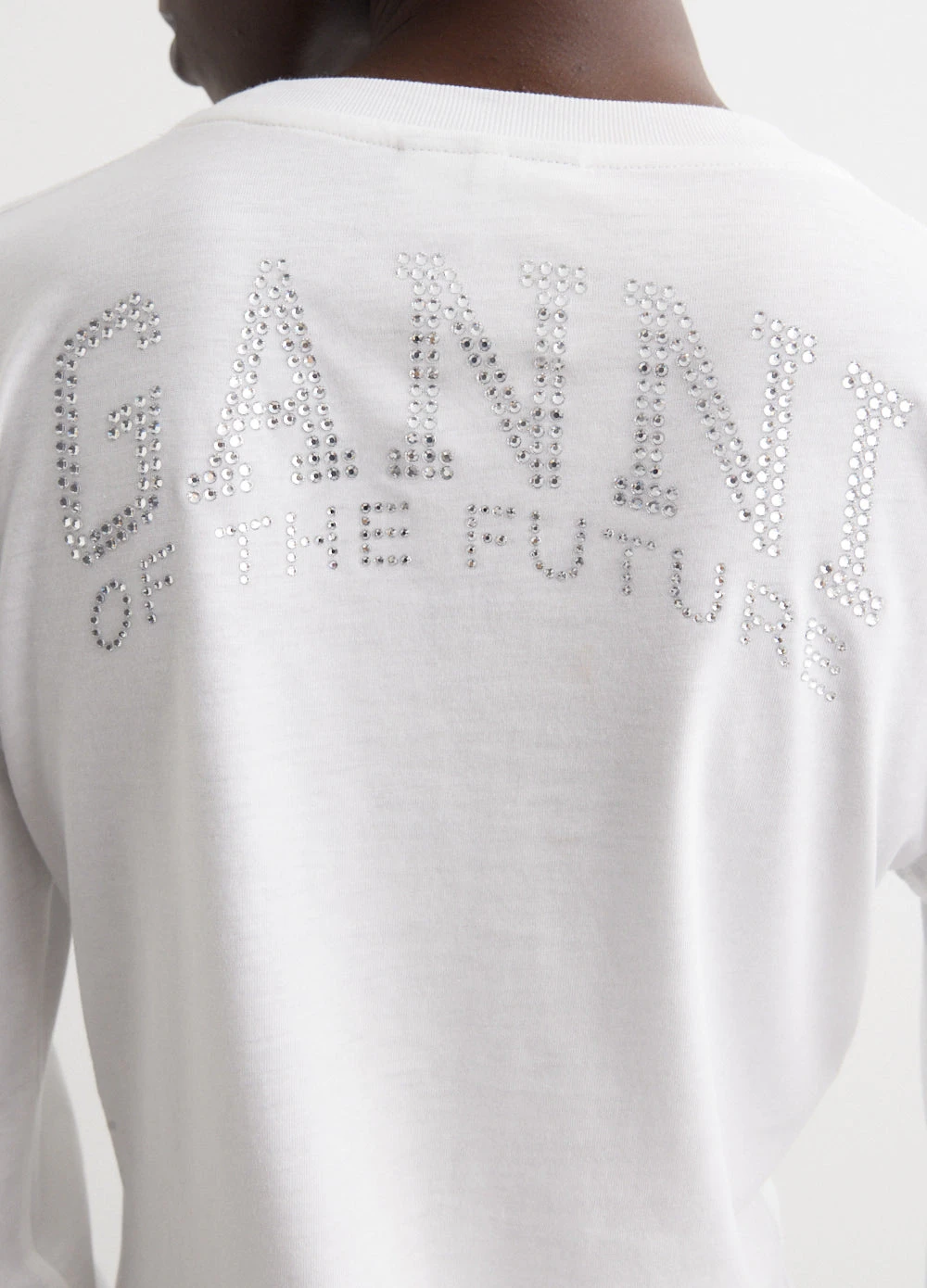 Danish label Ganni blends streetwear trends with a playful touch of humour through bold prints and colour palettes, voluminous silhouettes and easy-to-wear fabrics. Made from lightweight stretchy jersey, the Future Stretch Jersey Slim T-Shirt features a plain front and a rhinestone design at the back.Â