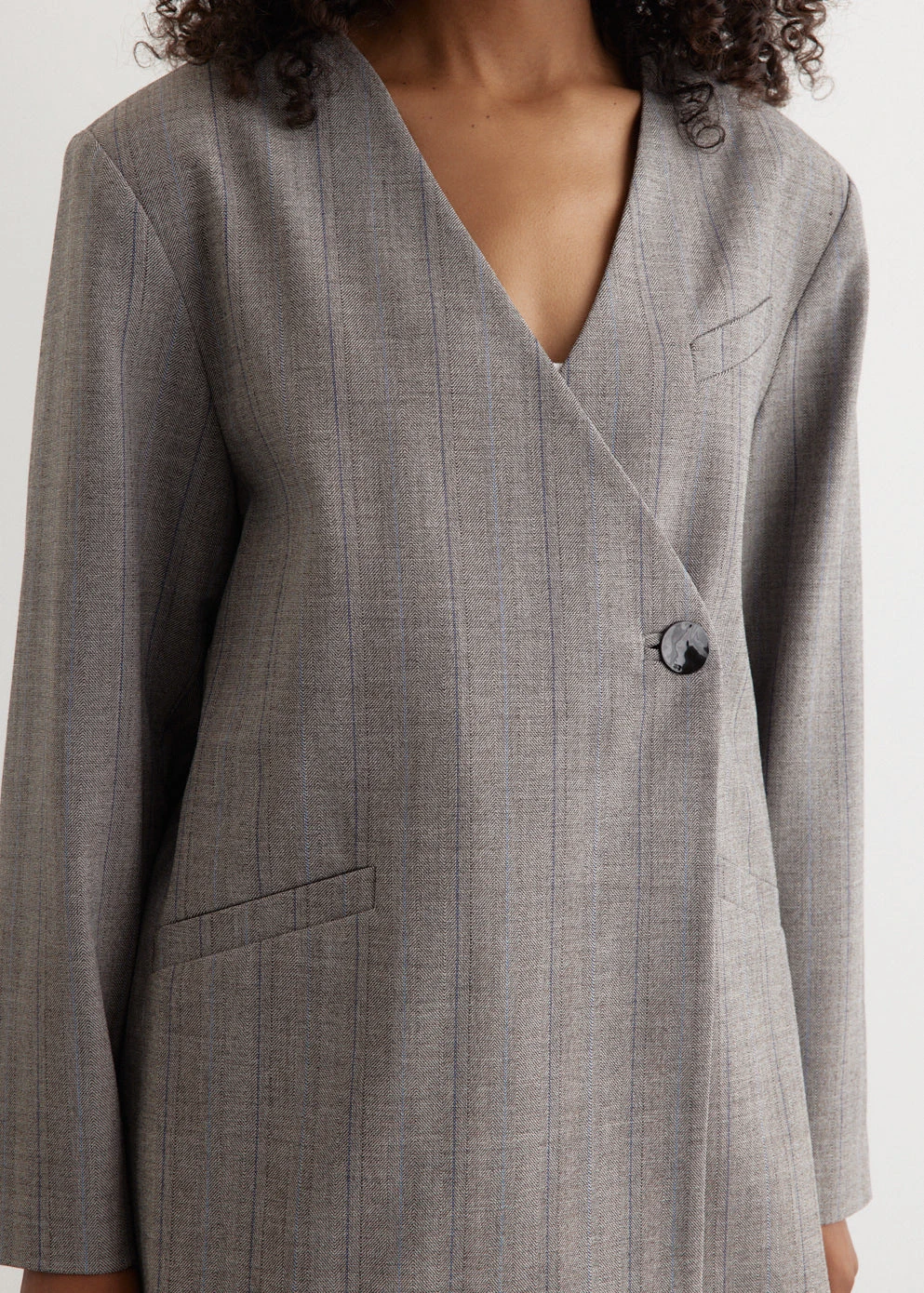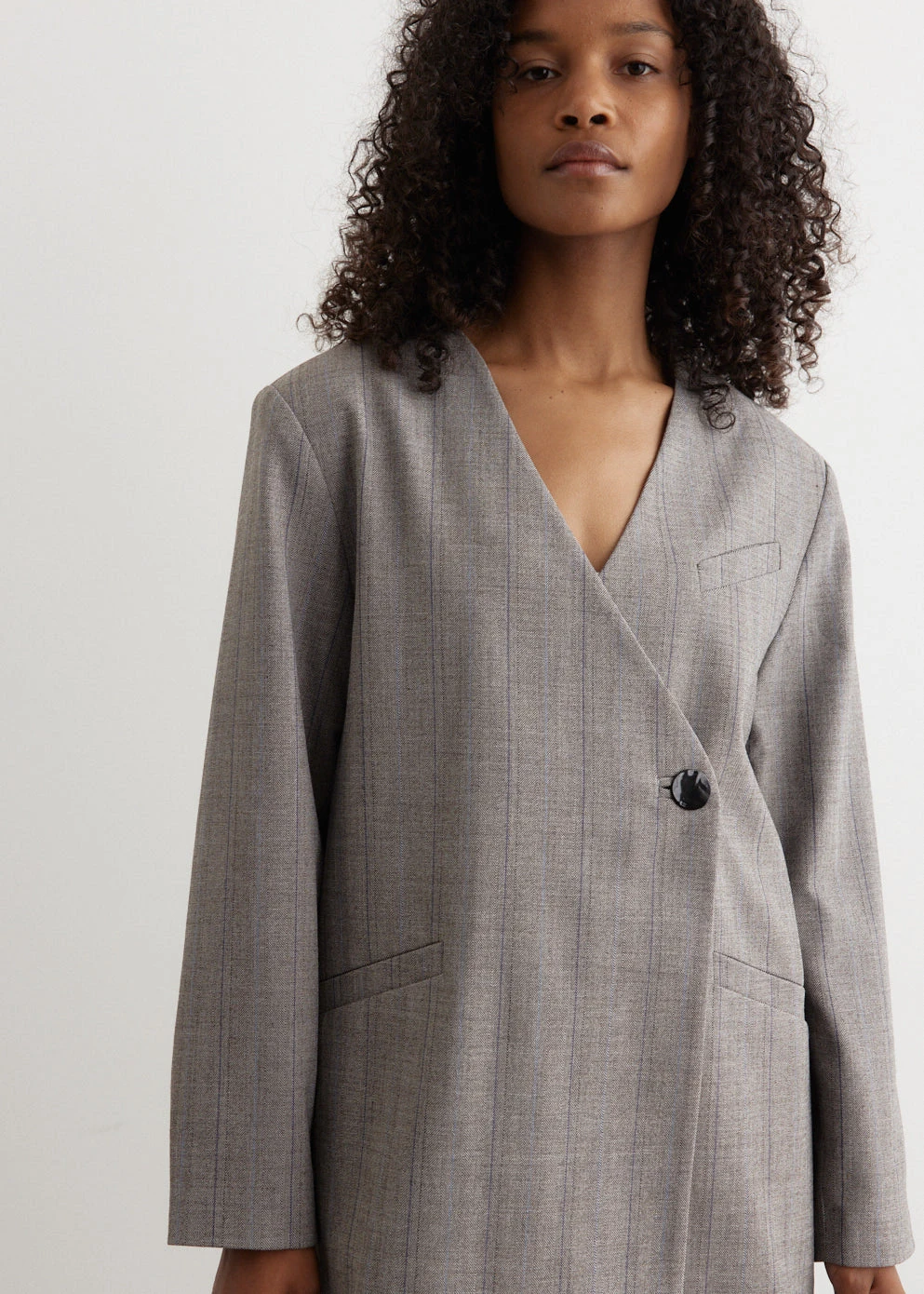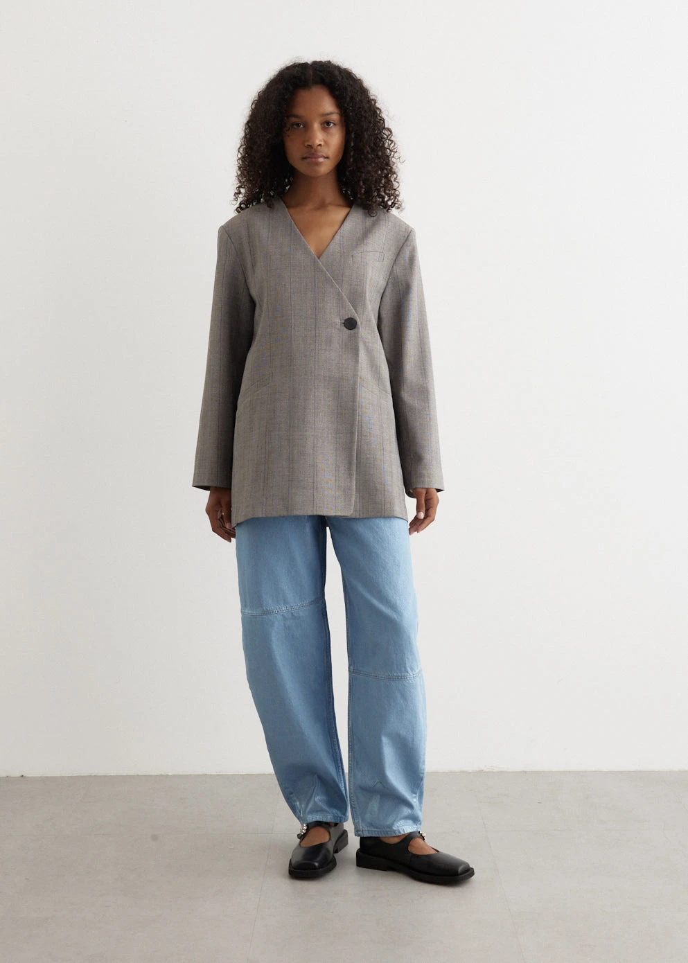 Danish label Ganni blends streetwear trends with a playful touch of humour through bold prints and colour palettes, voluminous silhouettes and easy-to-wear fabrics. Crafted from a lightweight, textured fabric with a herringbone pattern, the Herringbone Suiting Boxy Blazer is tailored to a relaxed, boxy fit. Its slanted welt pockets and single-button closure lend a sleek look.