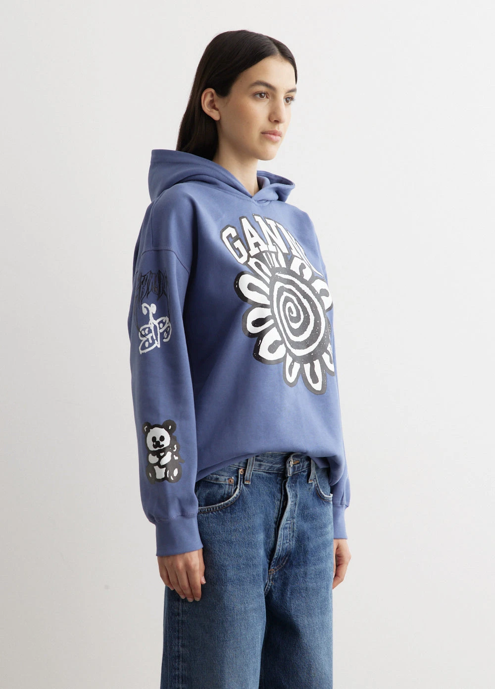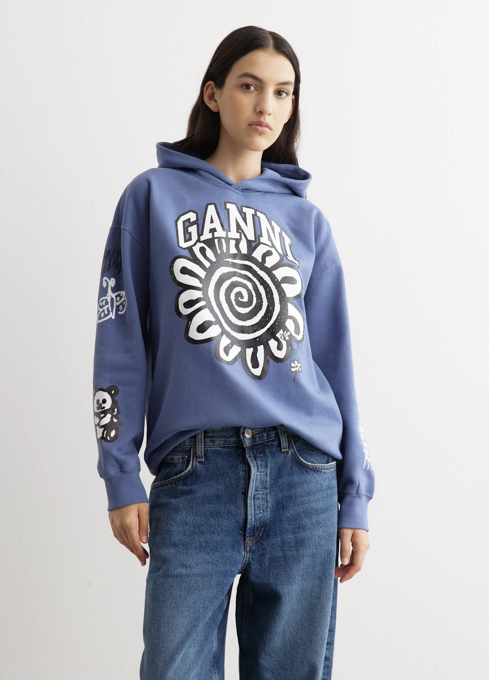 Danish label Ganni blends streetwear trends with a playful touch of humour through bold prints and colour palettes, voluminous silhouettes and easy-to-wear fabrics. Crafted from organic cotton, the Isoli Mega Flower Oversized Hoodie is adorned with a the brands signature flower print across the front and logo graphics on both sleeves. Elsewhere, it features classic hoodie details.