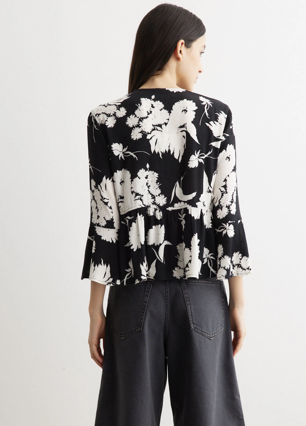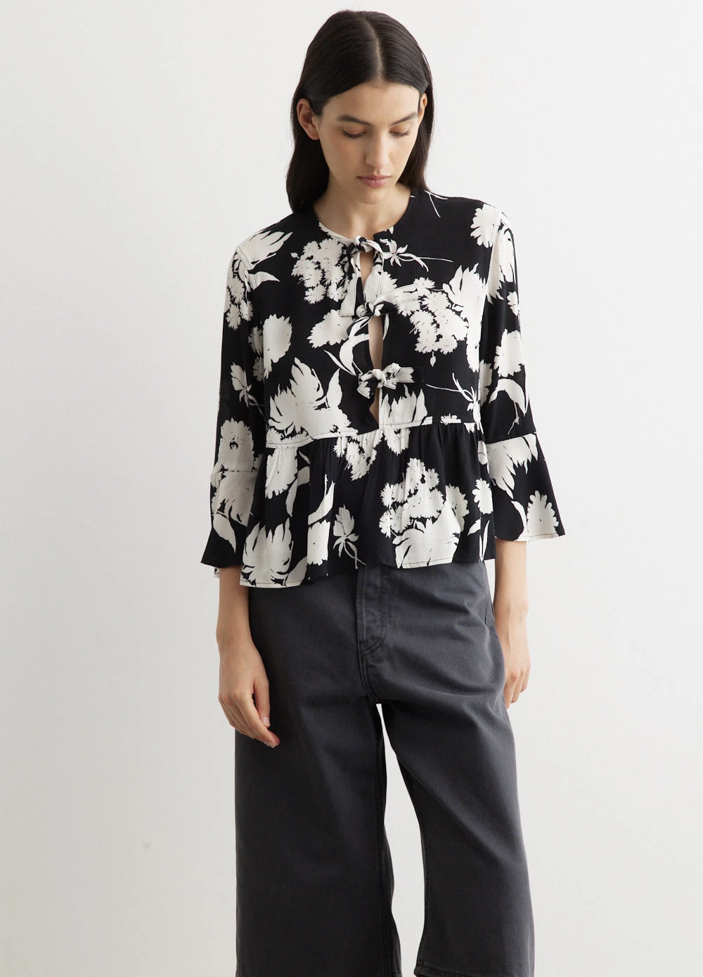 Danish label Ganni blends streetwear trends with a playful touch of humour through bold prints and colour palettes, voluminous silhouettes and easy-to-wear fabrics. Crafted from a viscose blend, the Printed Crepe Peplum Blouse is distinct with its front tie strings and all-over print for an elegant aesthetic.