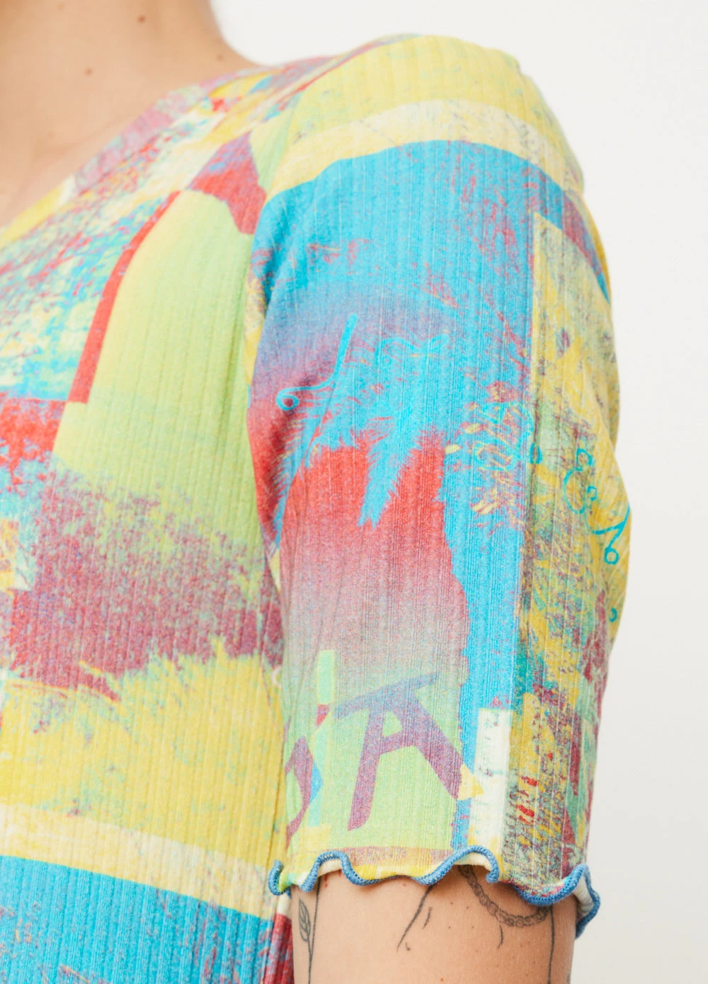 Danish label Ganni blends streetwear trends with a playful touch of humour through bold prints and colour palettes, voluminous silhouettes and easy-to-wear fabrics. Made from a Tencelâ„¢ Lyocell blend fabric with a ribbed texture, the Printed Rib Jersey Maxi Dress is adorned with a vivid, bold graphic print. It’s finished with frilled trims to add a hint of playfulness.
